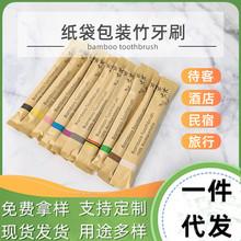 Juego de cepillos de dientes desechables de bambú para hoteles y B&B, cepillo de dientes de cerdas suaves, bolsa de papel kraft a la que se puede agregar pasta de dientes
