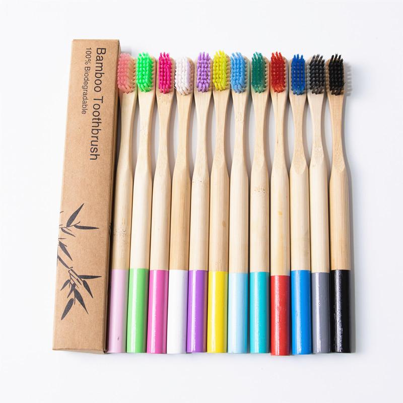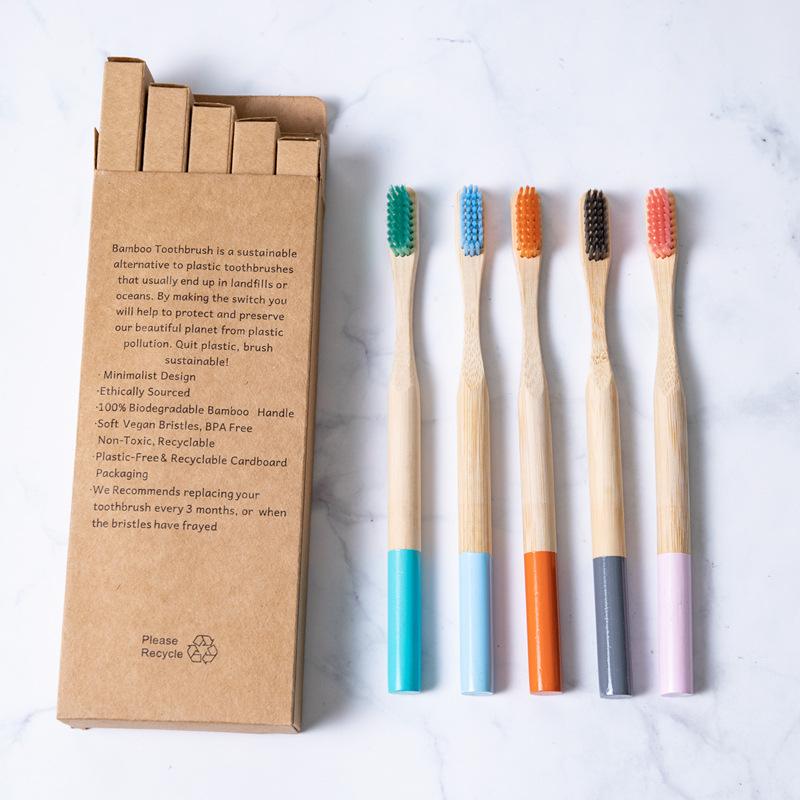 Cepillo de dientes desechable de bambú para viajes, hoteles, B&B, caja de papel Kraft, cepillo de dientes de cerdas suaves de carbón de bambú, juego de cepillos de dientes de bambú de comercio exterior