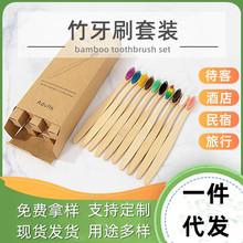 Cepillo de dientes de bambú de comercio exterior transfronterizo, cepillo de dientes de viaje, 10 piezas, carbón de bambú, cerdas suaves, juego de cepillos de dientes desechables, fabricante al por mayor