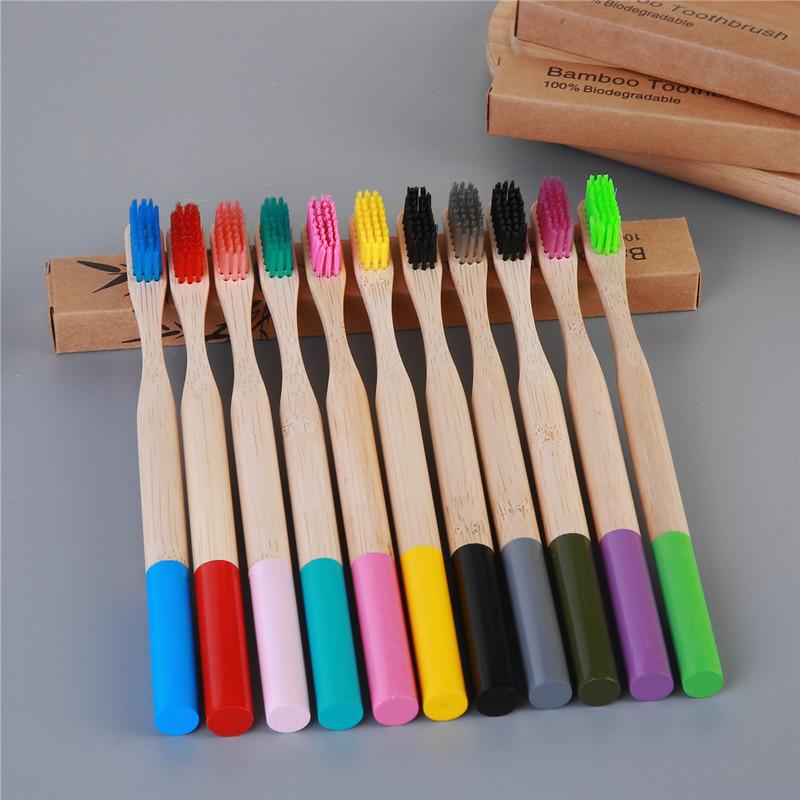 Cepillo de dientes de bambú de comercio exterior transfronterizo de 19 cm de largo con forma de calabaza, mango de bambú de color arcoíris, carbón de bambú, mango de bambú, cepillo de dientes de cerdas suaves, certificado CE