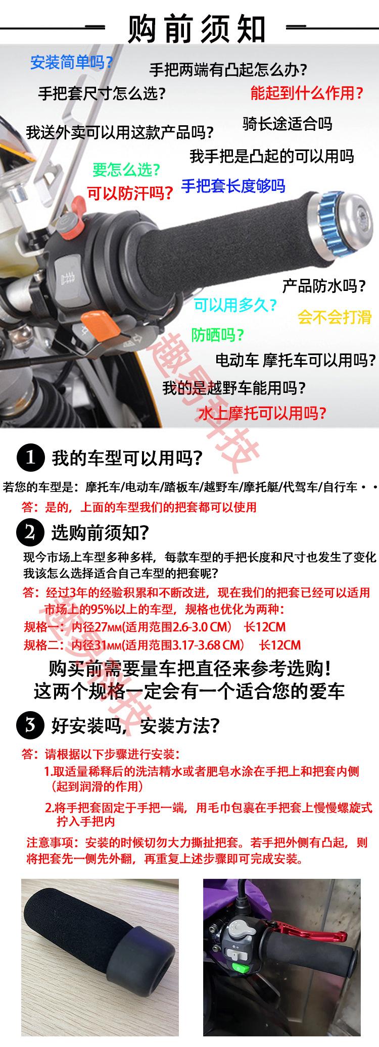 Nota: Los puños con un diámetro interior de 3.1 cm se usan principalmente para bicicletas eléctricas/motocicletas. Los puños con un diámetro interior de 2.7 cm se usan principalmente para motocicletas/bicicletas/piñones fijos/bicicletas de montaña/lanchas a motor.