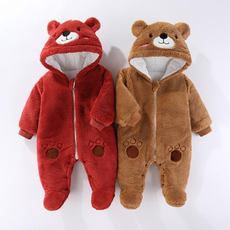 Mono de bebé de invierno para recién nacidos, cálido traje de escalada, mono de peluche para bebé, pijama para niños, gorro de oso