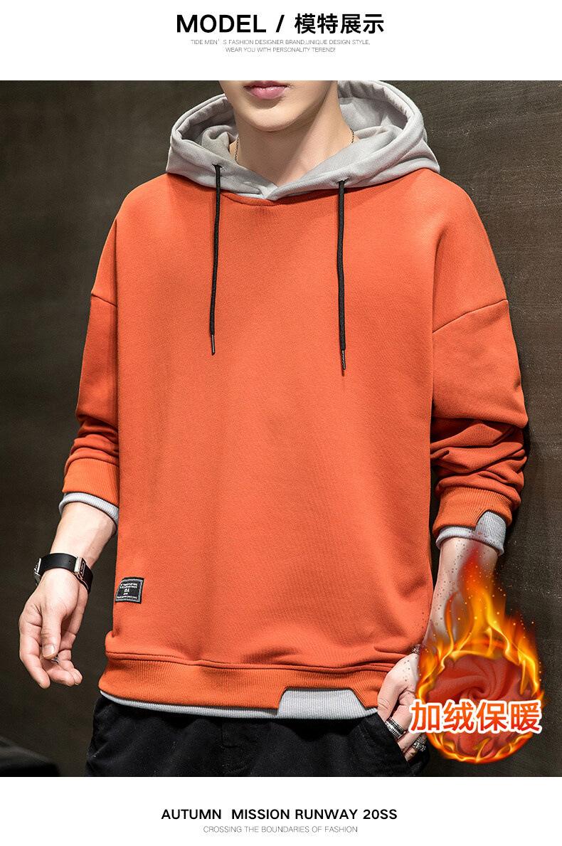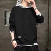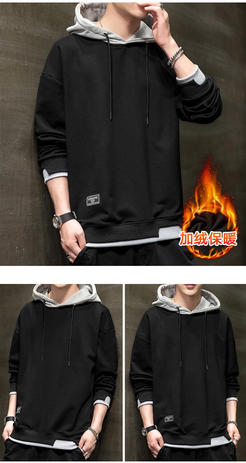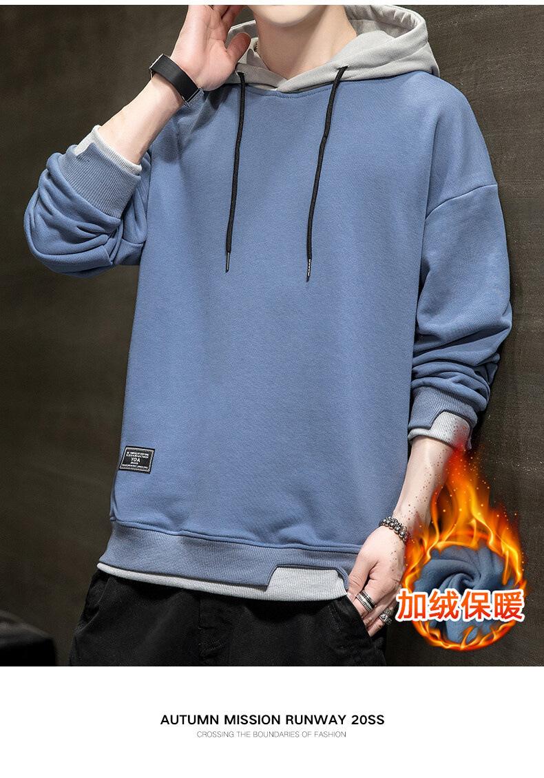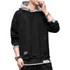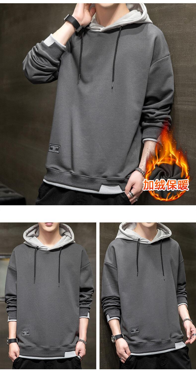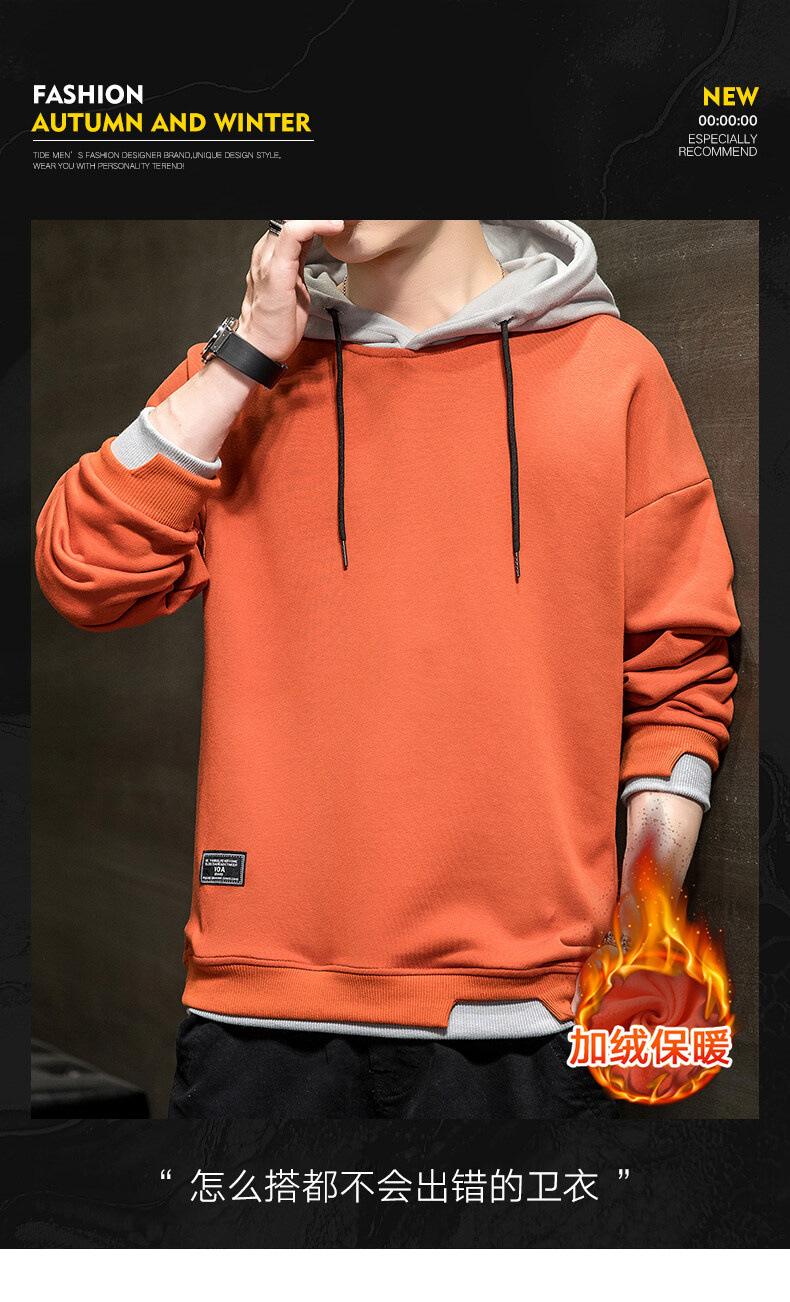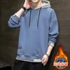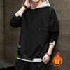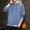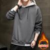 Suéter con Capucha para Hombre Otoño e Invierno Nuevo con Forro Polar Cálido Camiseta Base Moda Juvenil Falso Dos Piezas Casual Holgado Top