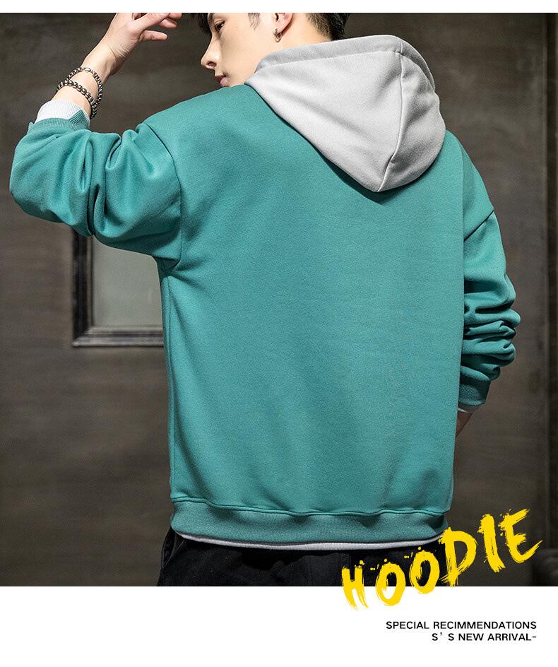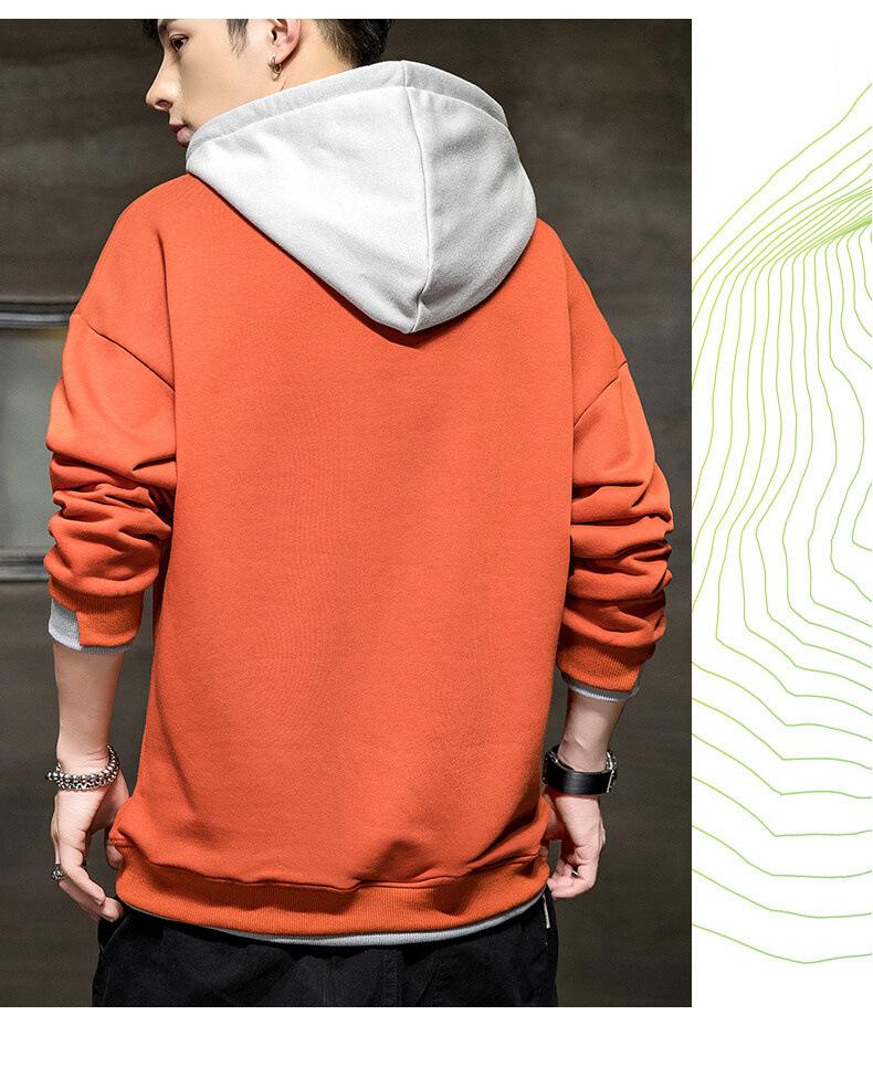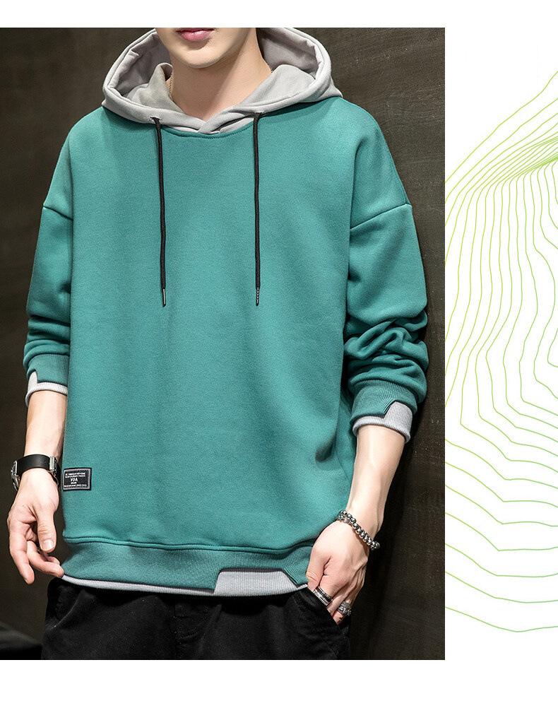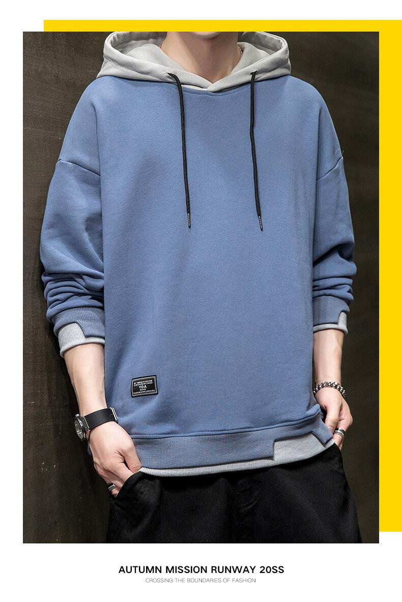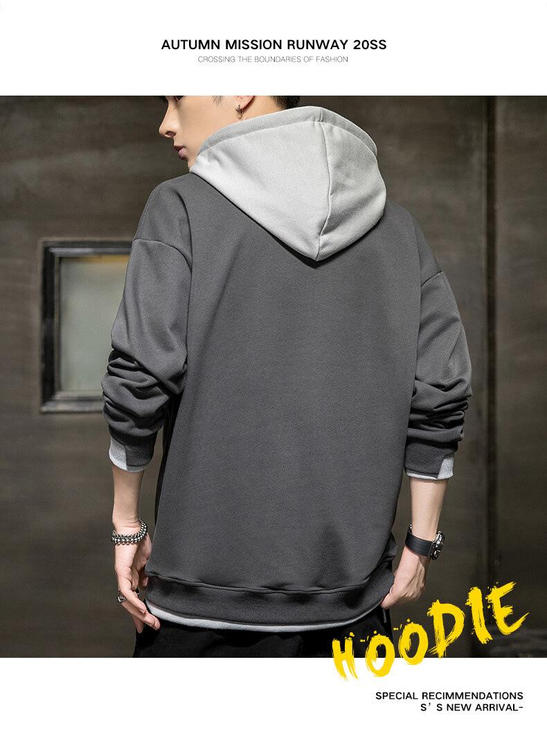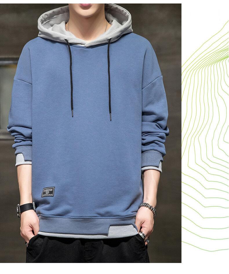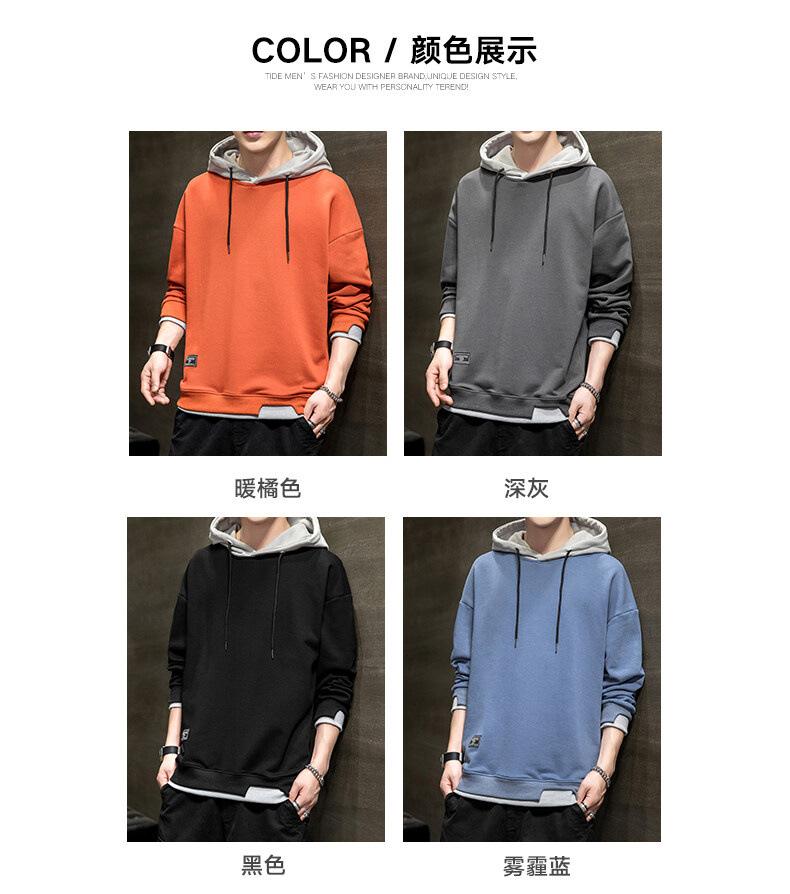 Suéter con Capucha para Hombre Otoño e Invierno Nuevo con Forro Polar Cálido Camiseta Base Moda Juvenil Falso Dos Piezas Casual Holgado Top