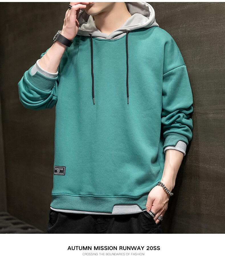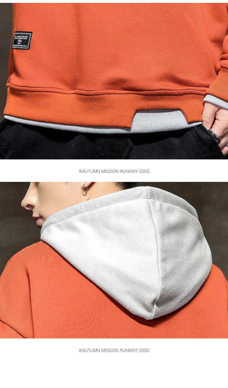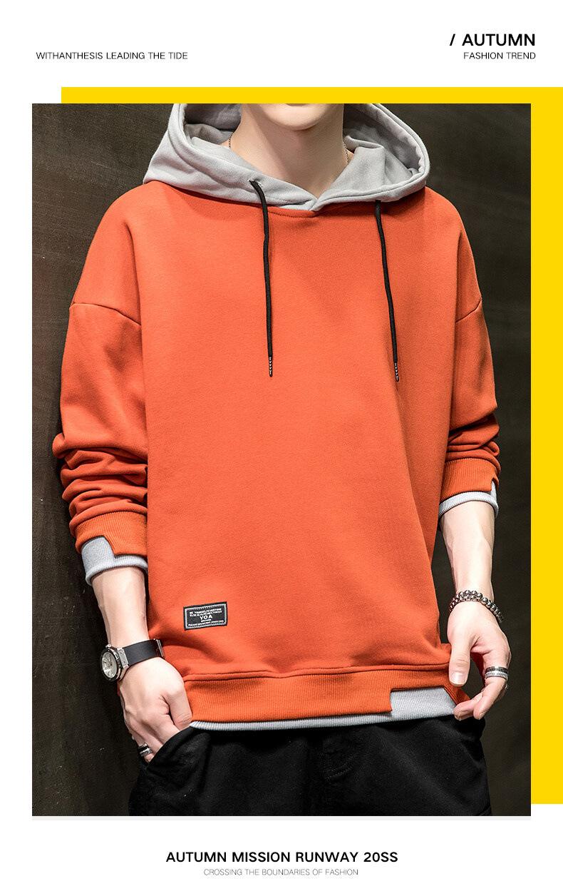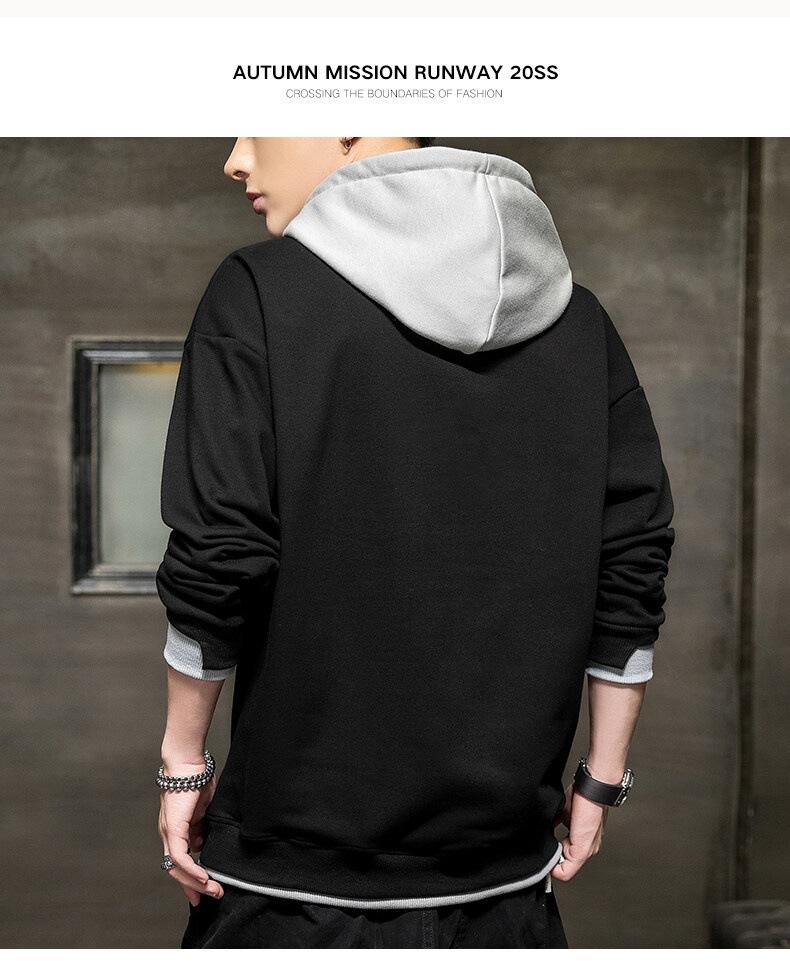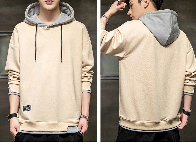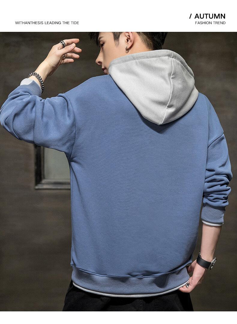 Suéter con Capucha para Hombre Otoño e Invierno Nuevo con Forro Polar Cálido Camiseta Base Moda Juvenil Falso Dos Piezas Casual Holgado Top