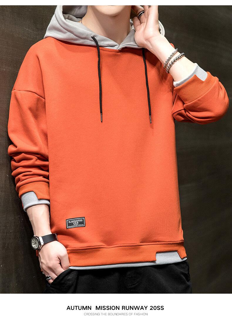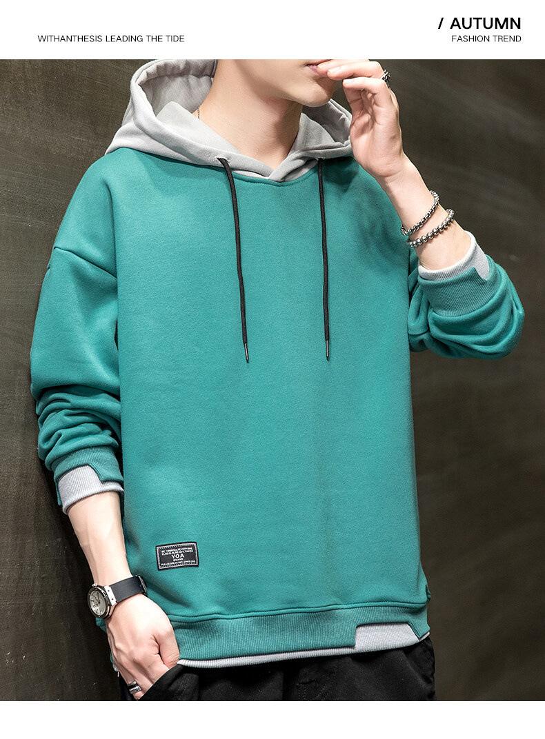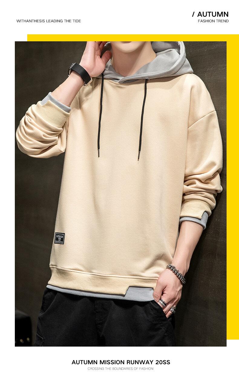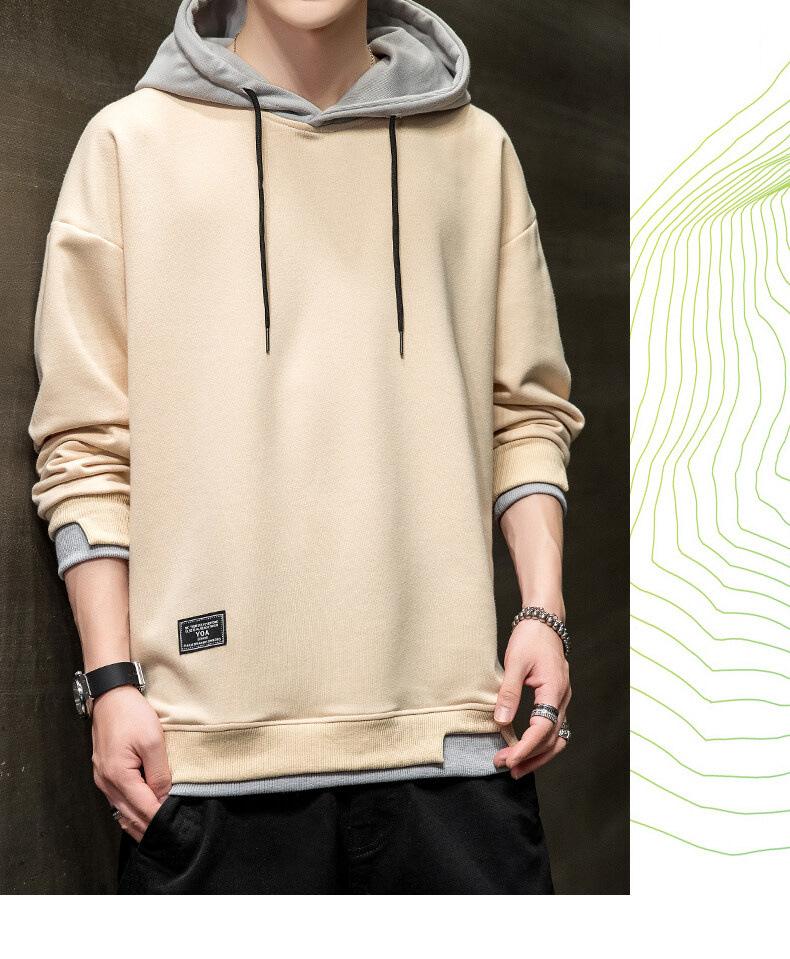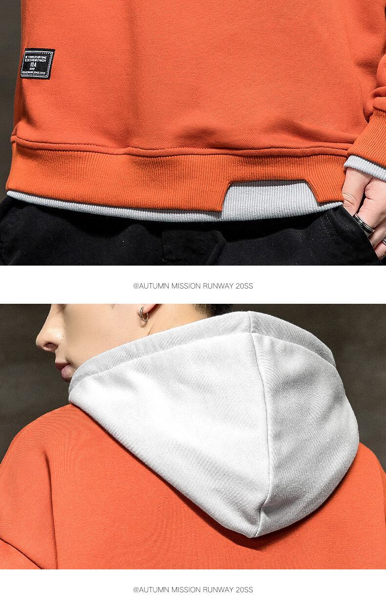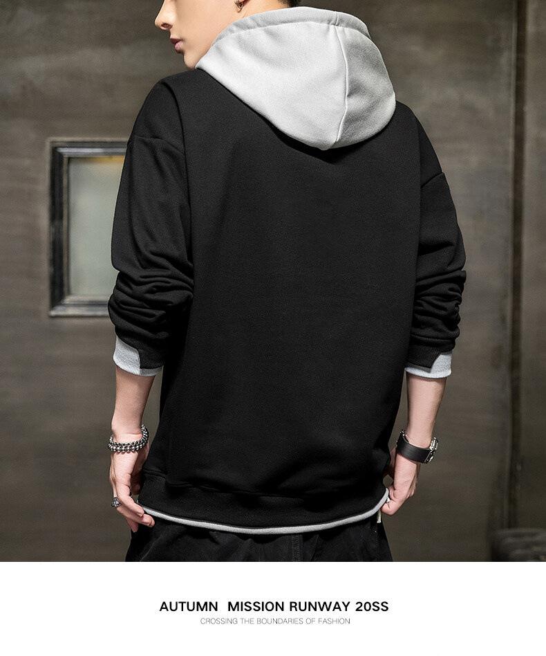 Suéter con Capucha para Hombre Otoño e Invierno Nuevo con Forro Polar Cálido Camiseta Base Moda Juvenil Falso Dos Piezas Casual Holgado Top