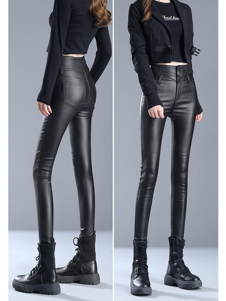 Pantalones de Cuero Mate para Mujer Pantalones Lápiz de Cintura Alta Verano 2025 Delgados Ajustados Estilizan Piernas Pies Pequeños Ropa Exterior Leggings