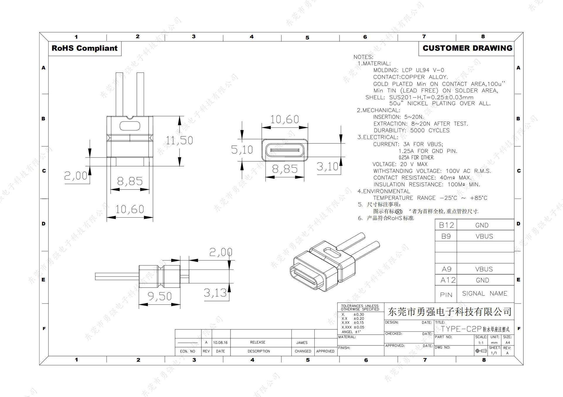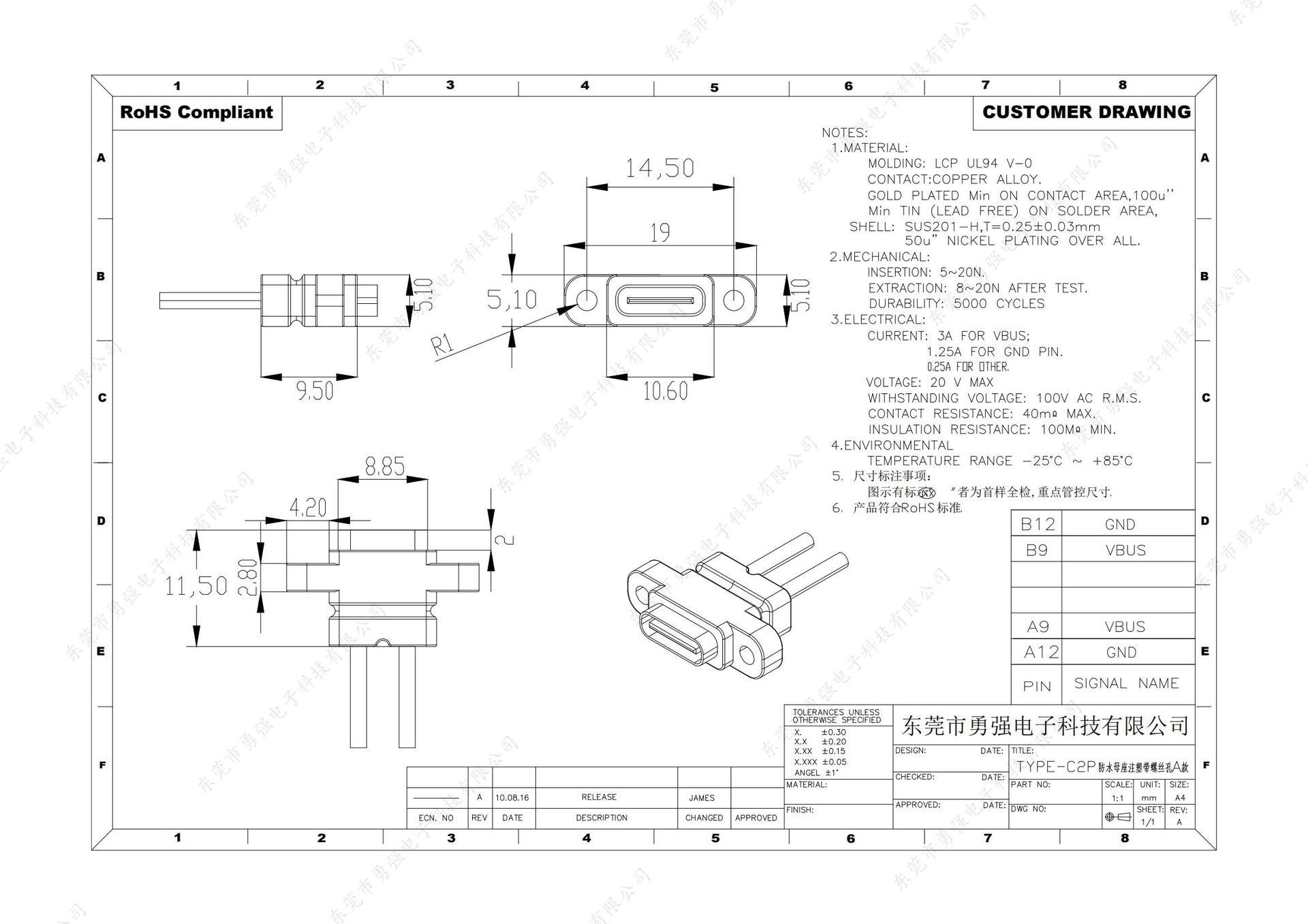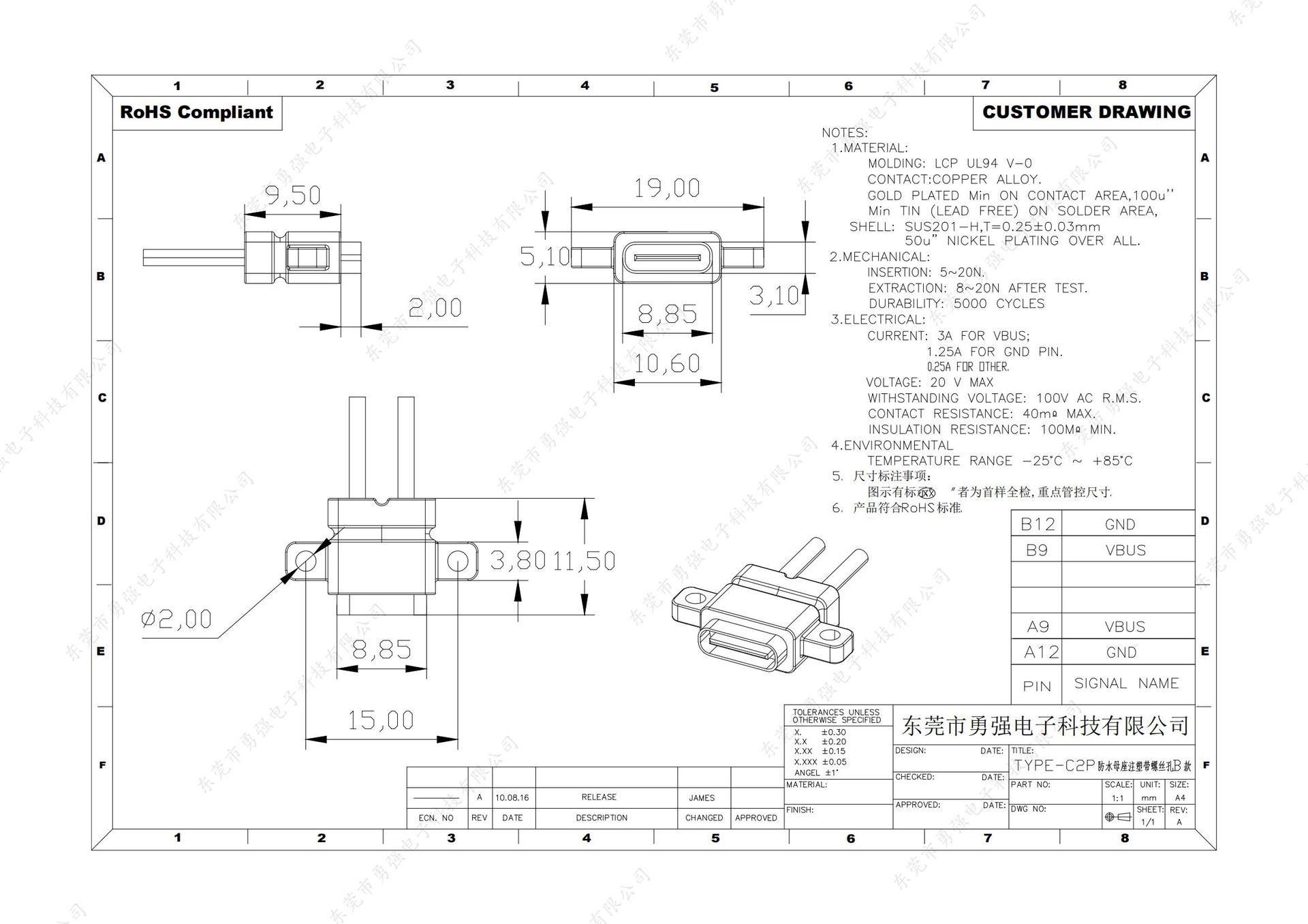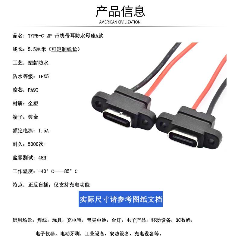 TYPE-C 2p welded wire waterproof type A with ears, TYPE-C 2p welding wire type with ear waterproof Type B, TYP...