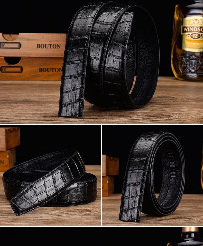 Nuevo Cinturón para Hombre con Patrón de Cocodrilo sin Hebilla Automática, Casual para Combinar con Todo, Tira de Cinturón Ligera para Negocios, Cinturón con Doble Ranura para Tarjetas