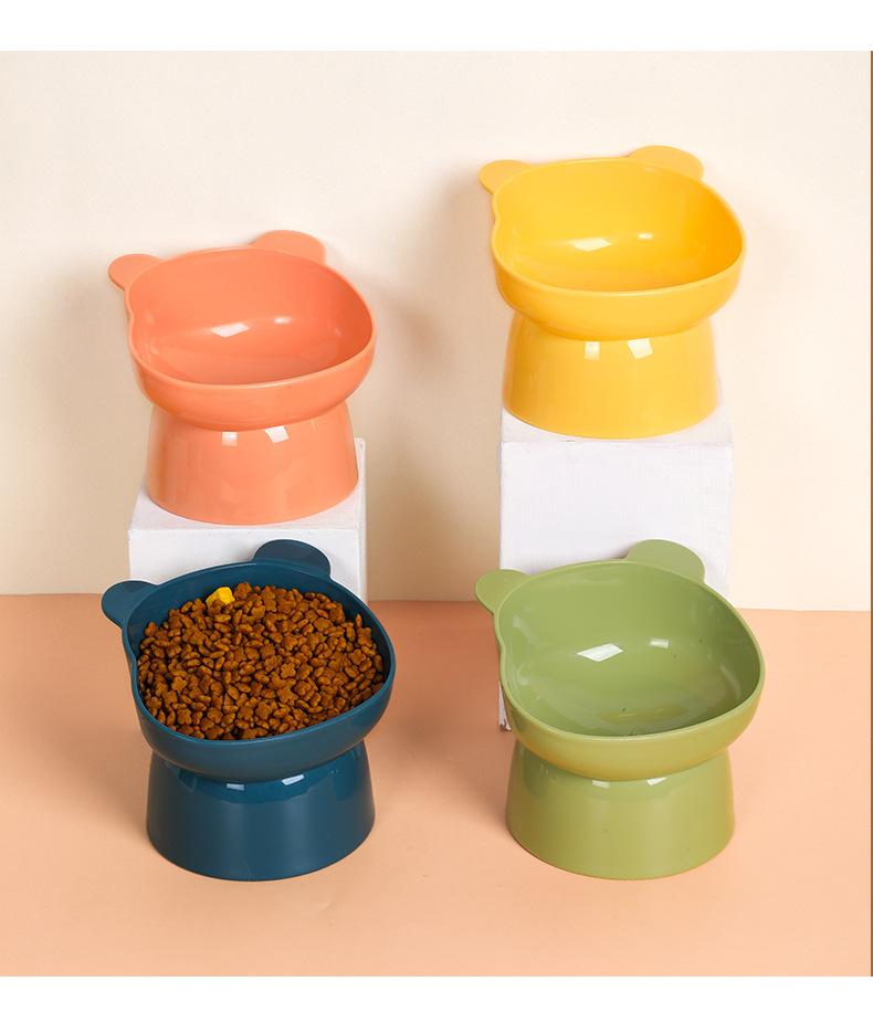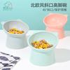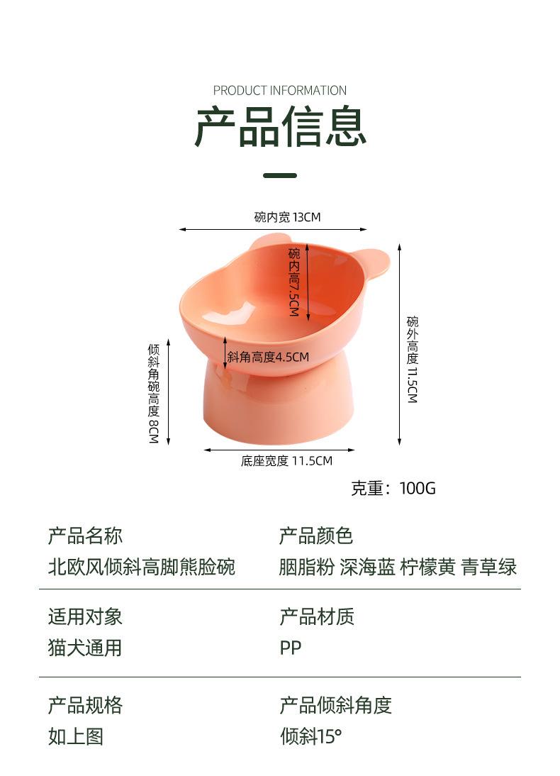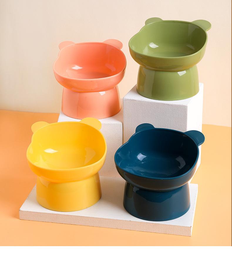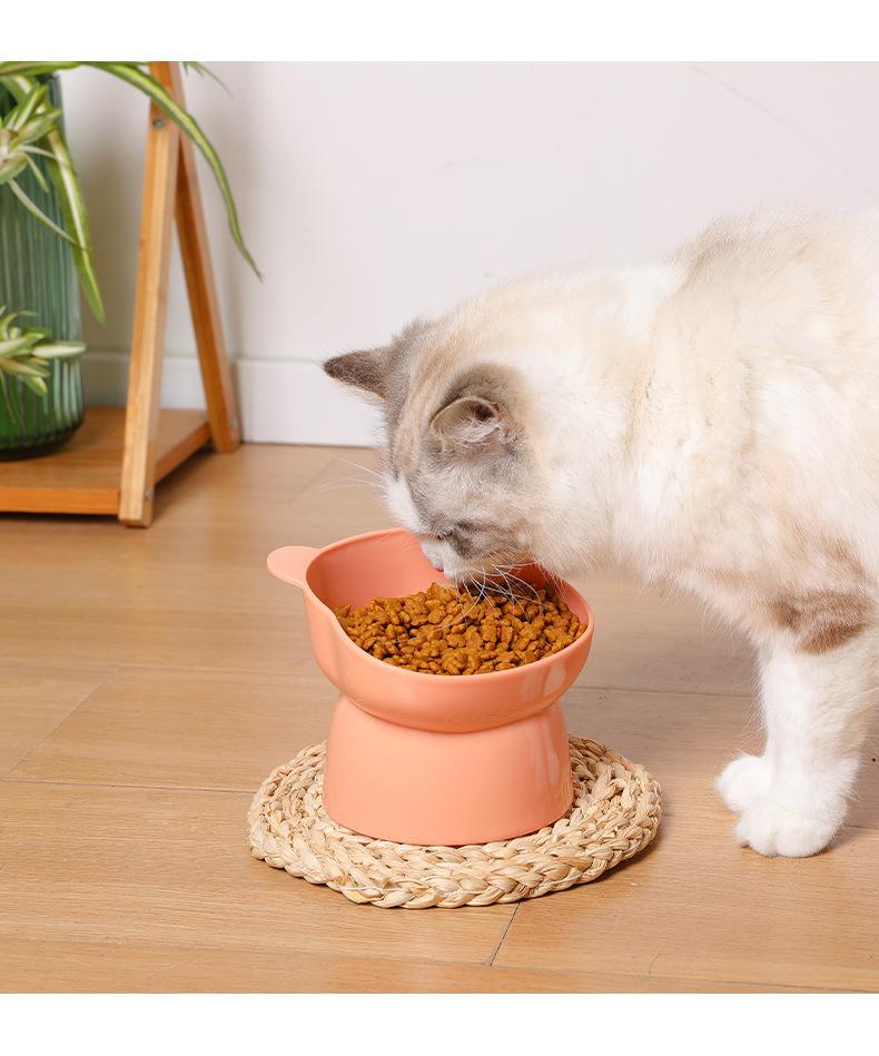 Tazón Alto para Gato al Por Mayor Spot Estilo Nórdico Inclinado Dibujos Animados Protector de Cuello Anti-Volcaduras Tazón para Mascota Tazón para Gato y Perro Tazón para Comida