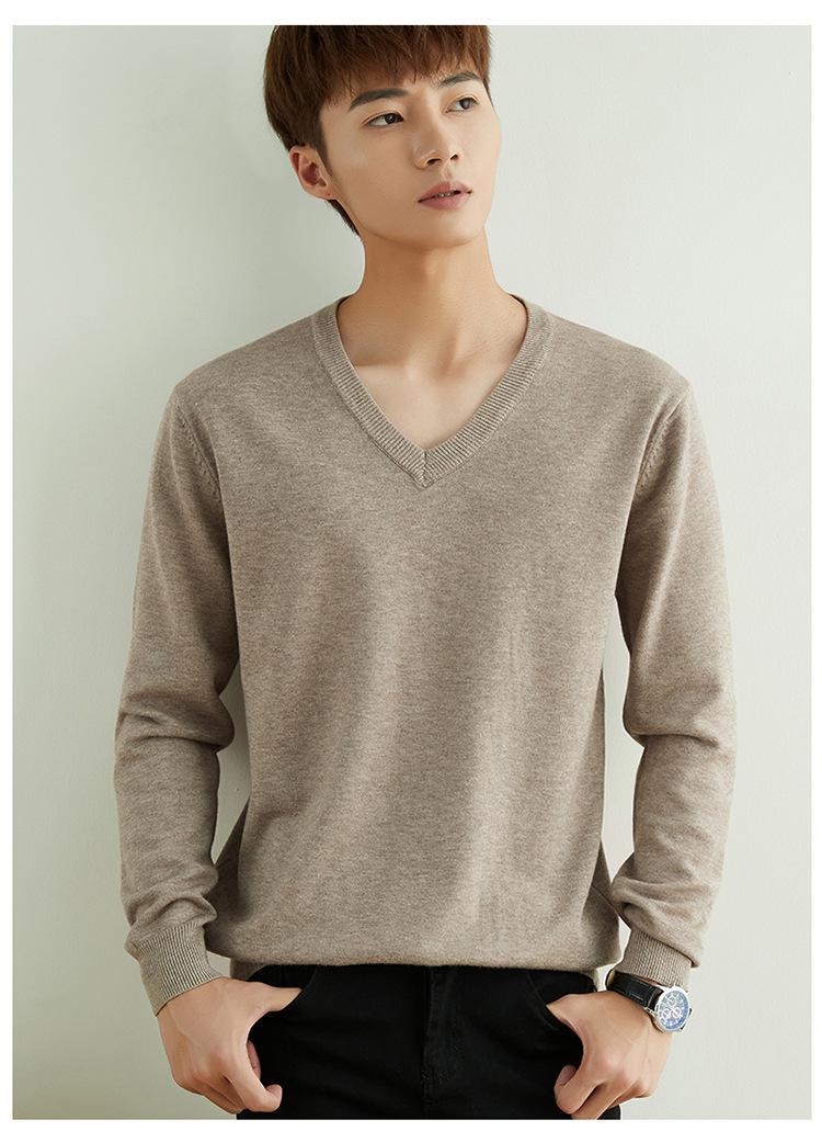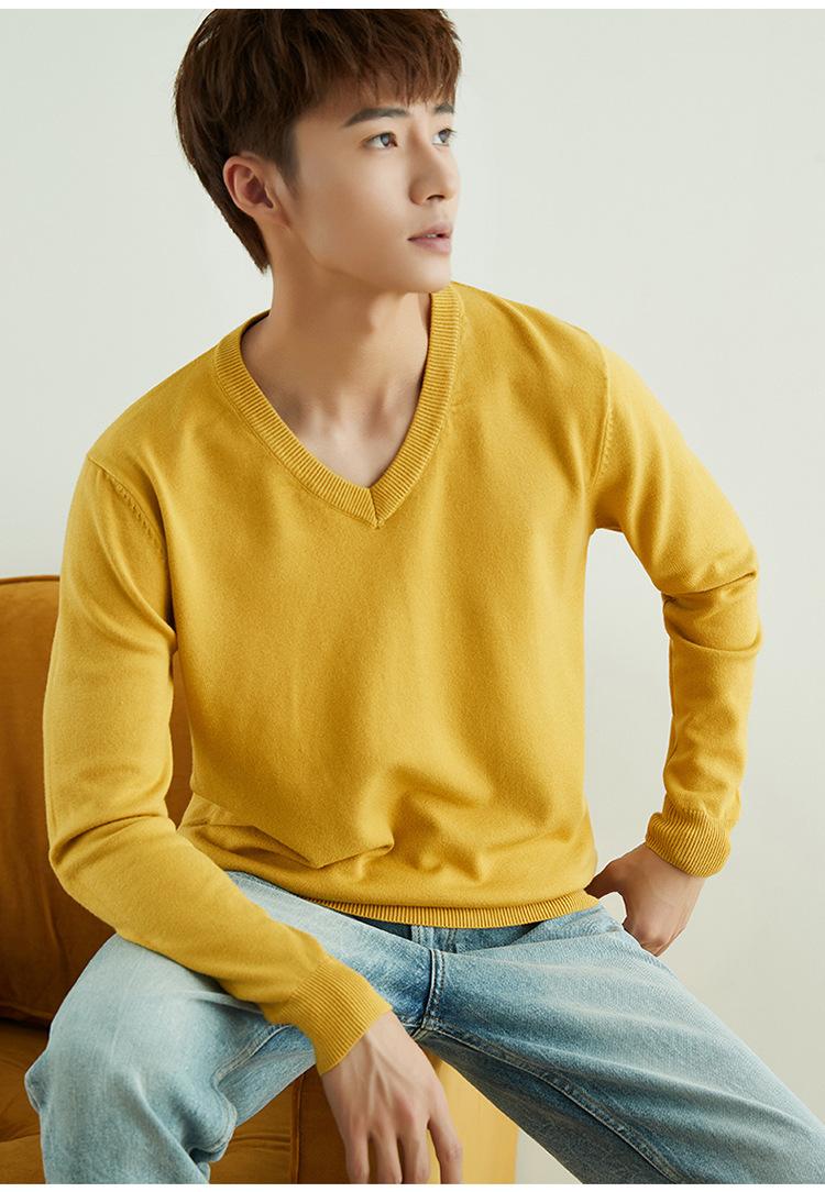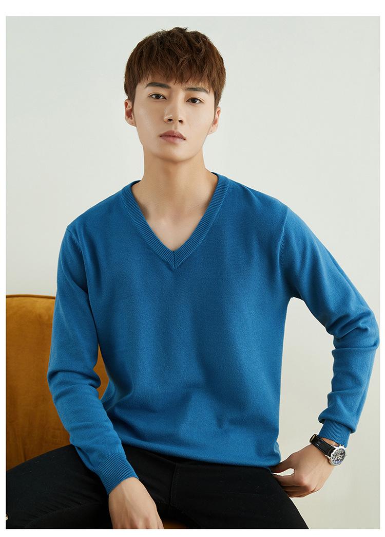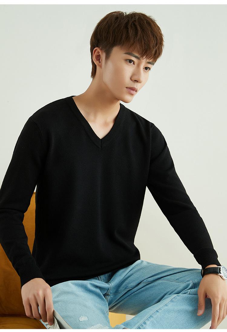 Suéter de punto para hombre, jersey de cuello redondo, manga larga, estilo juvenil, informal, con cuello en V, novedad de otoño e invierno