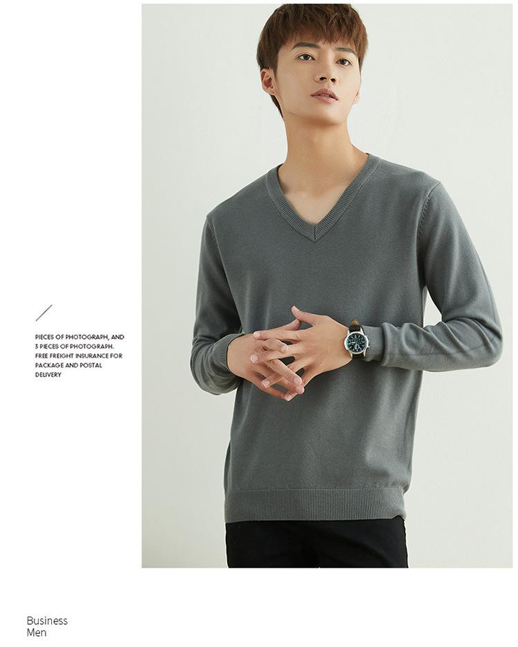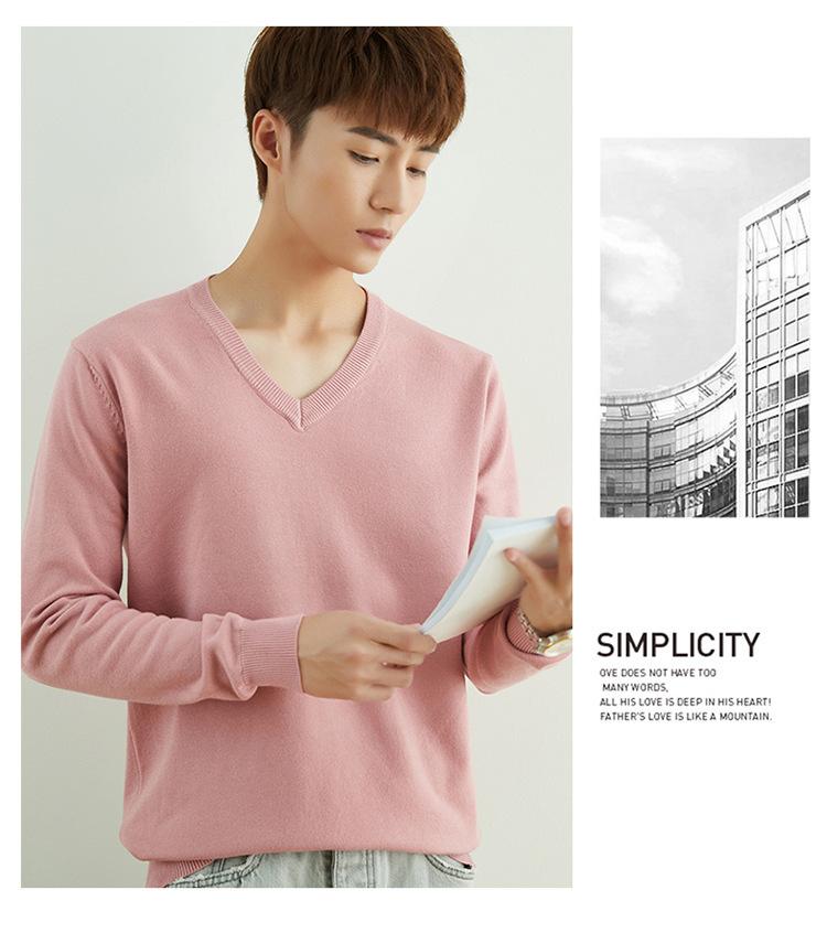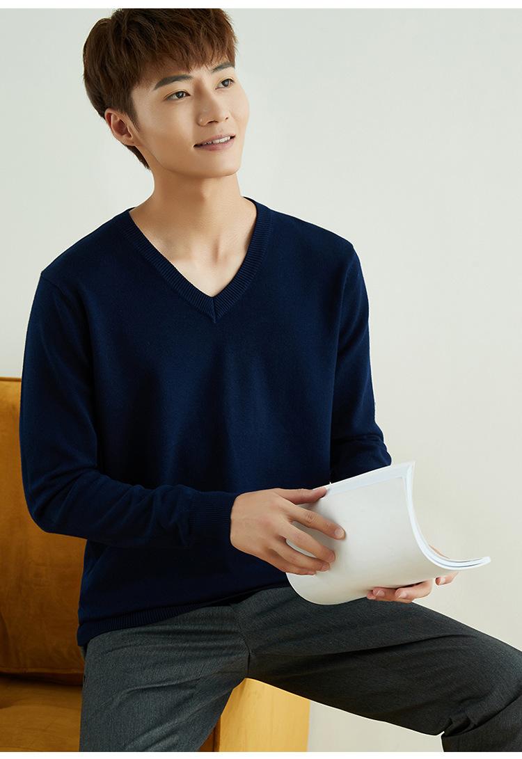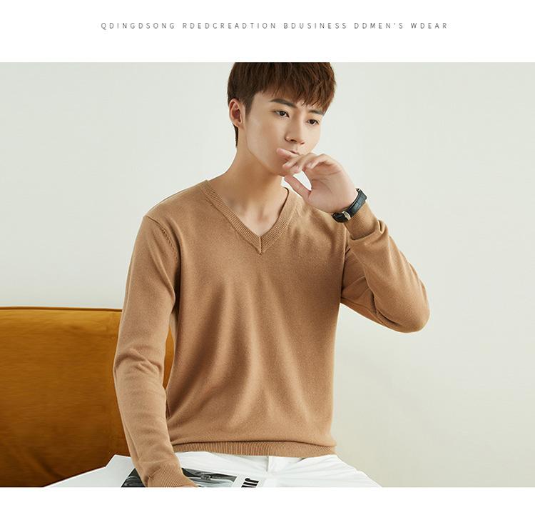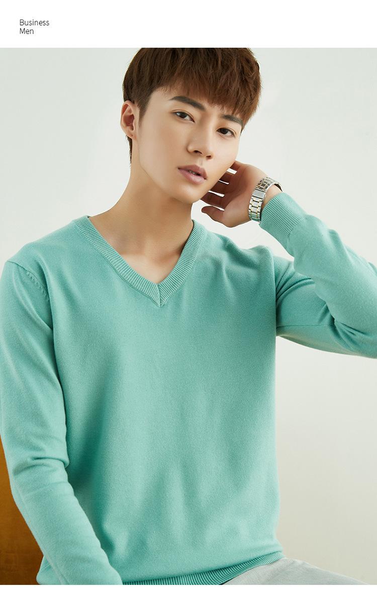 Suéter de punto para hombre, jersey de cuello redondo, manga larga, estilo juvenil, informal, con cuello en V, novedad de otoño e invierno