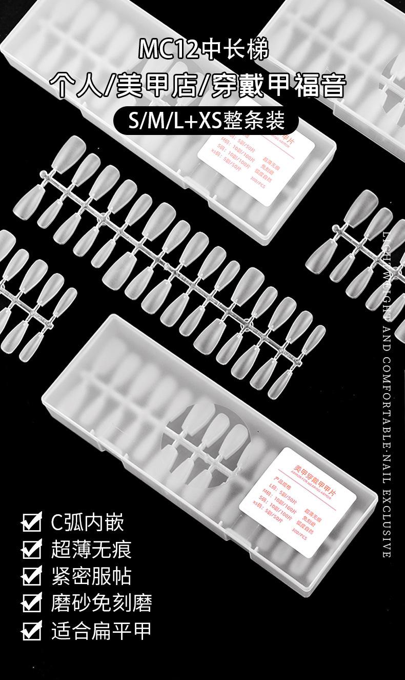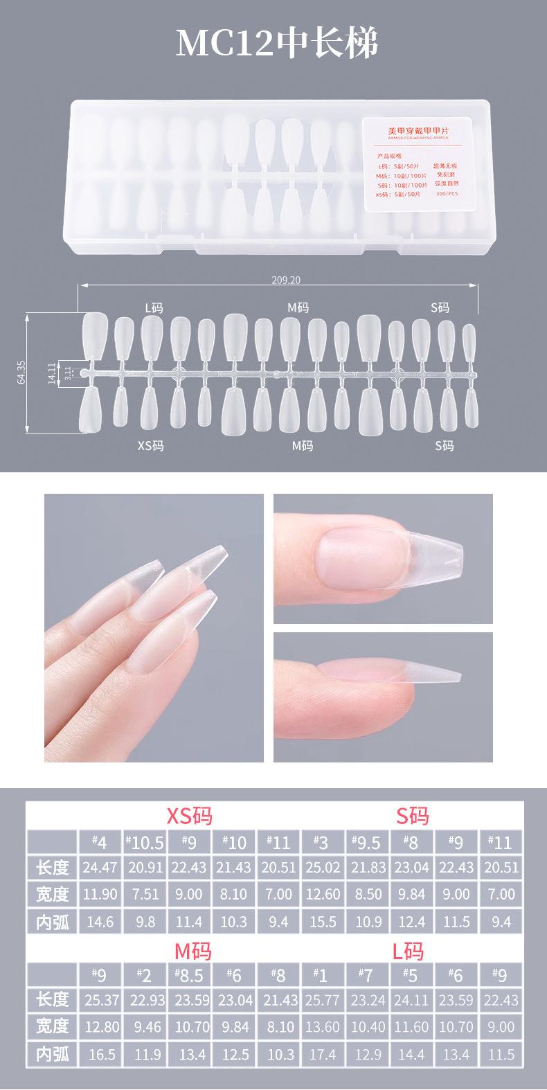 MC12 uña uña uña 300 ultrafina esmerilada no grabada pulido escalera uña código dividido SM bolsa entera uña postiza