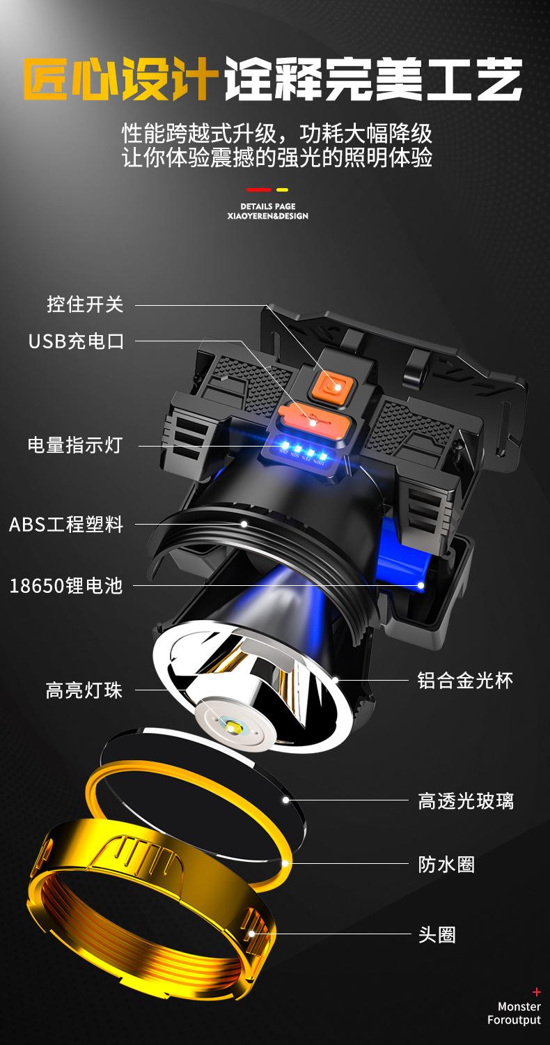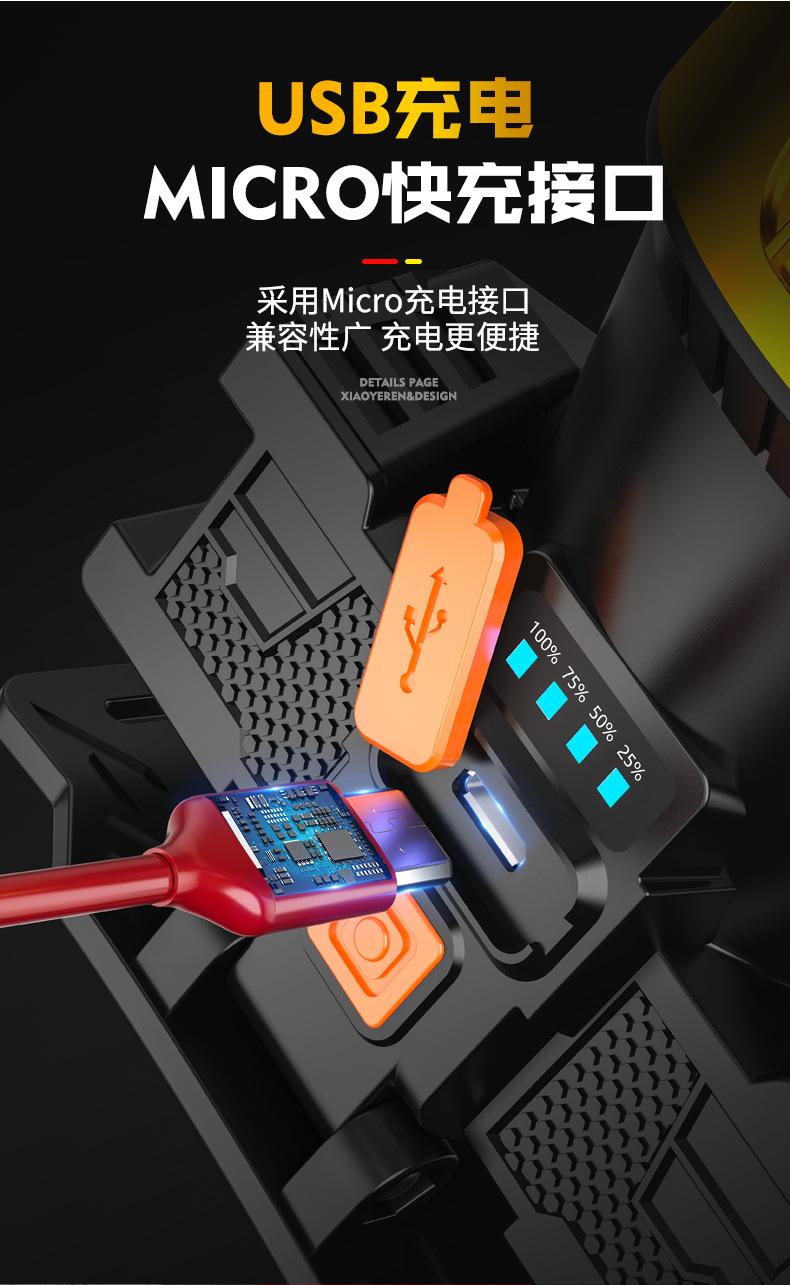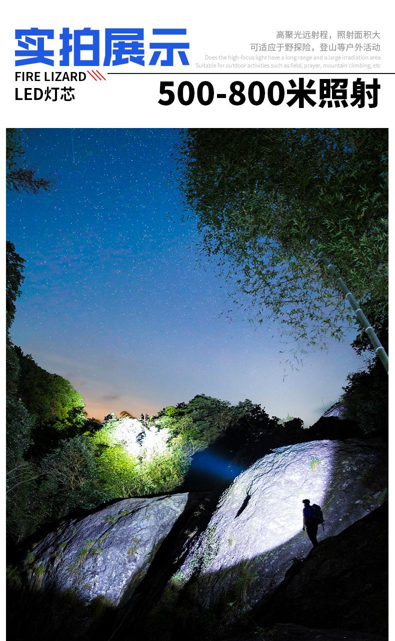 5. El producto está diseñado para ser resistente a la lluvia y no se puede usar para inmersión directa ni buceo. Cargue la linterna a tiempo si la usa durante más de 2 horas cada vez (no la sobrecargue ni la descargue para evitar daños), para que la reacción física dentro de la batería de litio sea benigna. Prolongue la vida útil de la batería.