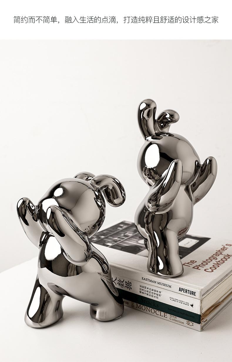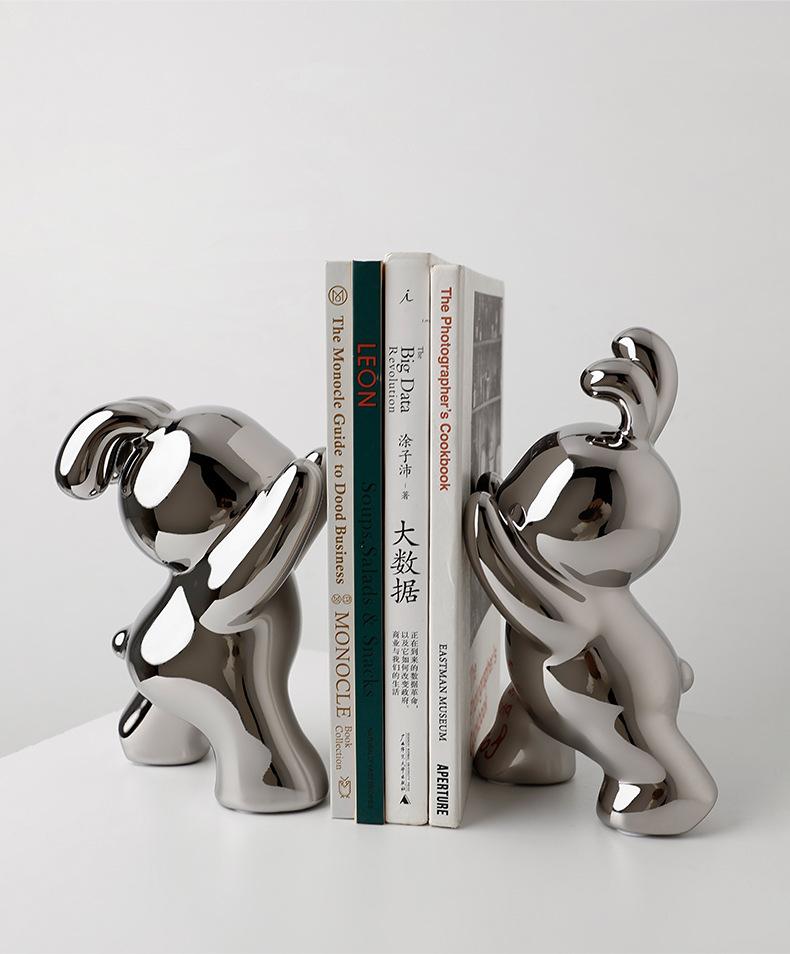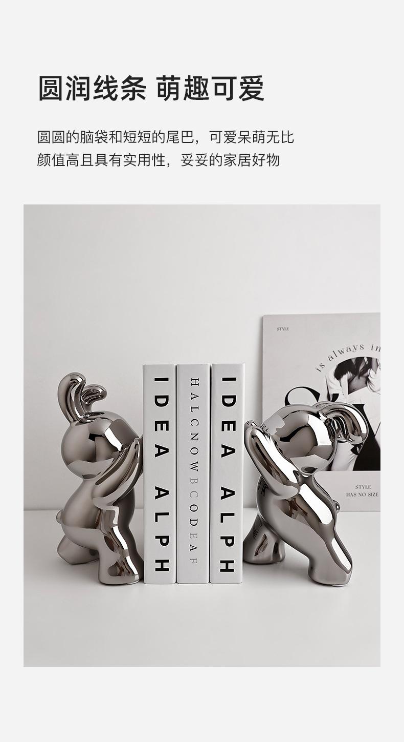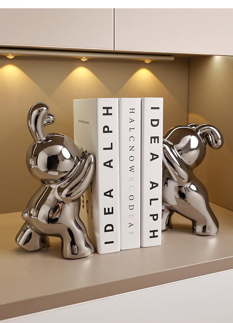Beihanmei Empujar Empujar Conejo Recibidor Mueble de TV Vinoteca Cerámica Plateada Dibujos Animados Sujetalibros Escritorio para el Hogar Decoración Suave