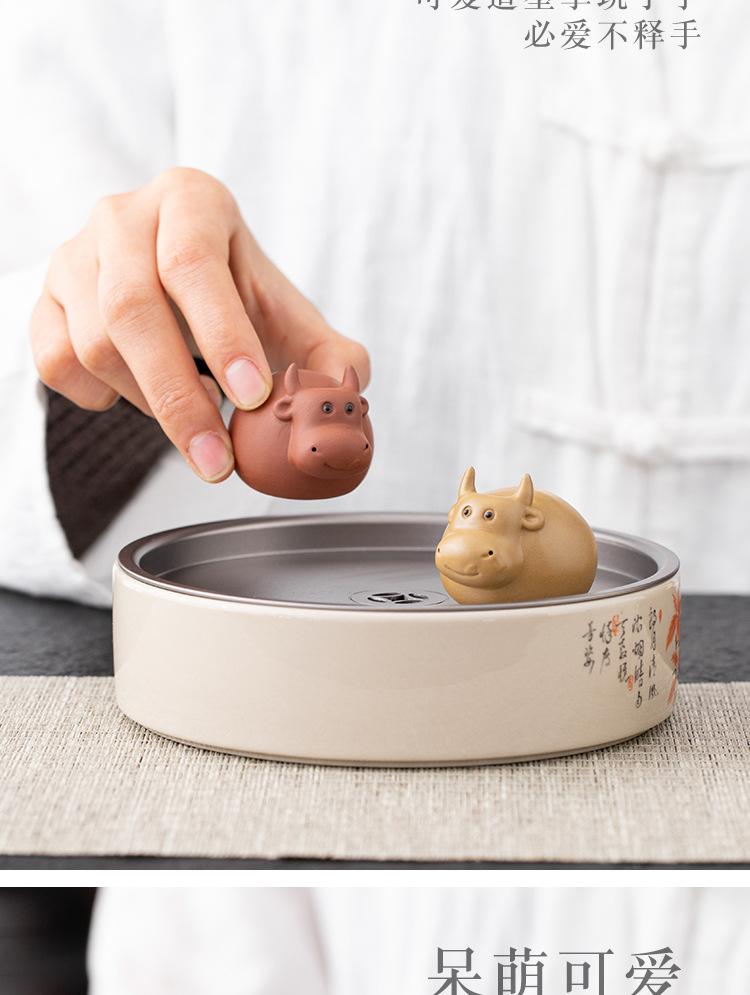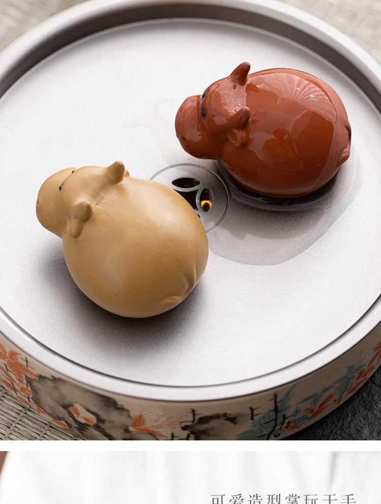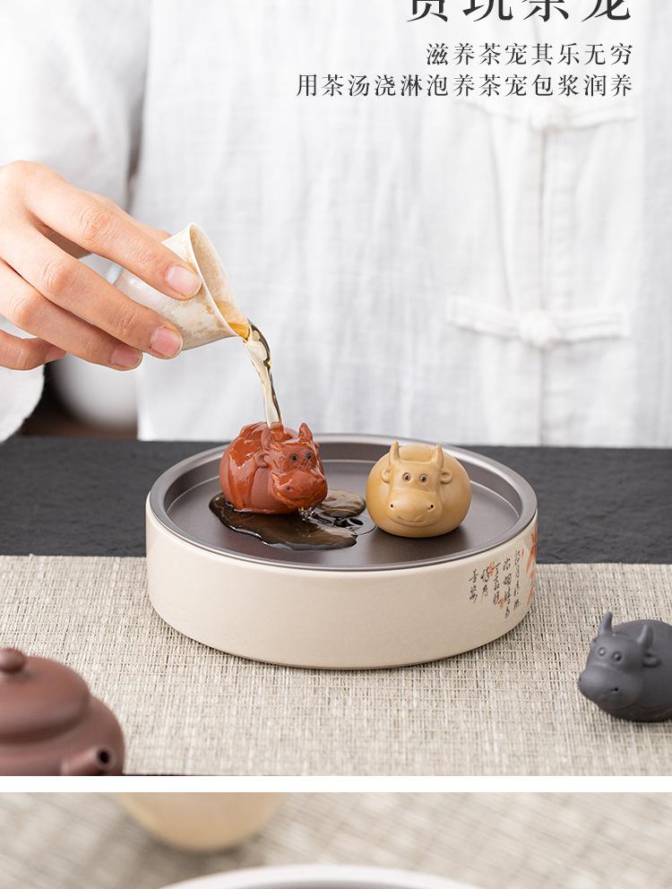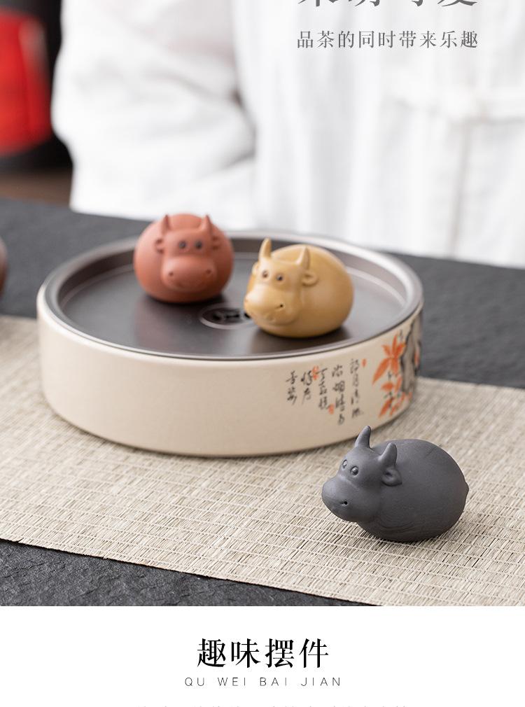 Mini tetera de arena morada con adornos para mascotas, de bolsillo, para jugar al té, mesa de té, juego de té de Kung Fu