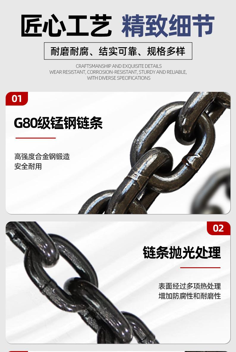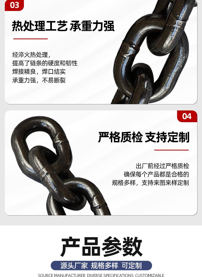 Cadena de elevación de acero al manganeso G80, cadena de hierro negro cocido galvanizado de alta resistencia, eslinga de cadena de elevación de grado G100