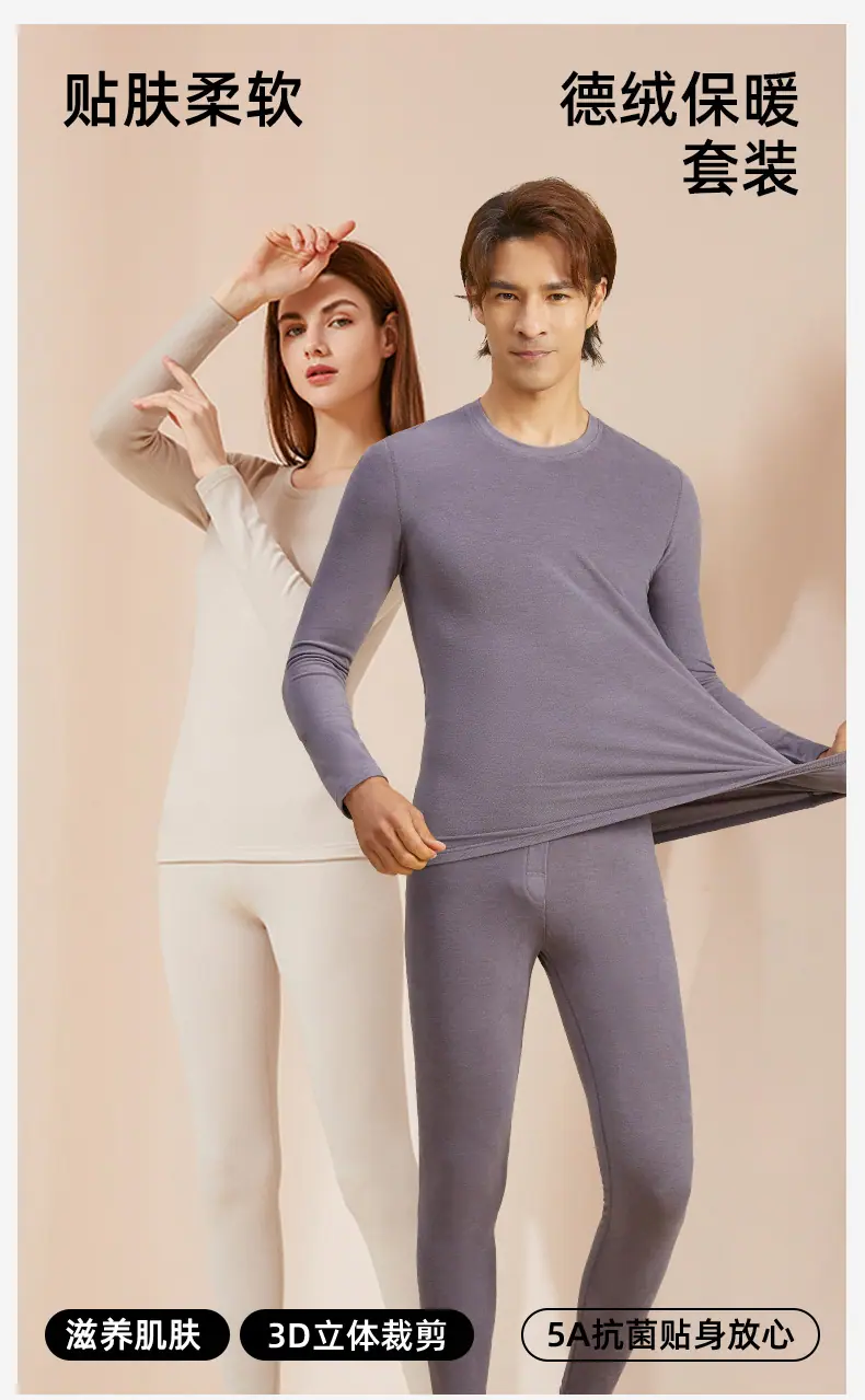 Conjunto de Ropa Interior Térmica para Hombre y Mujer, con Forro Polar y Grueso para Otoño e Invierno