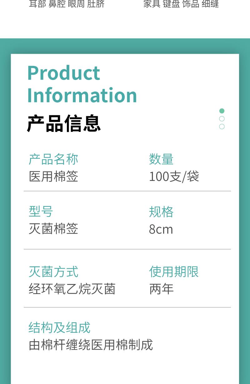 Self-encapsulated medical cotton swabs 8cm (100 pcs/small bag in total)