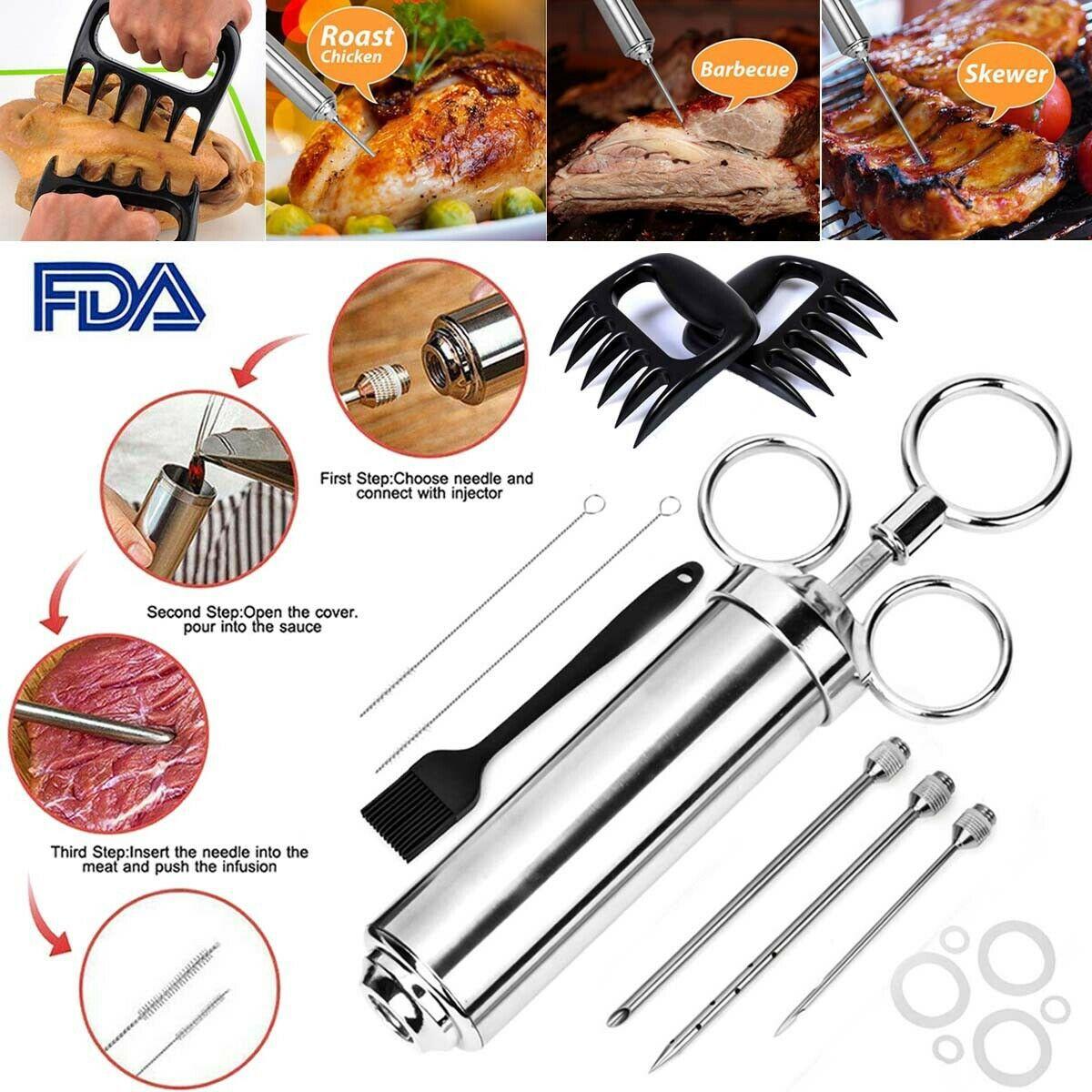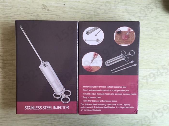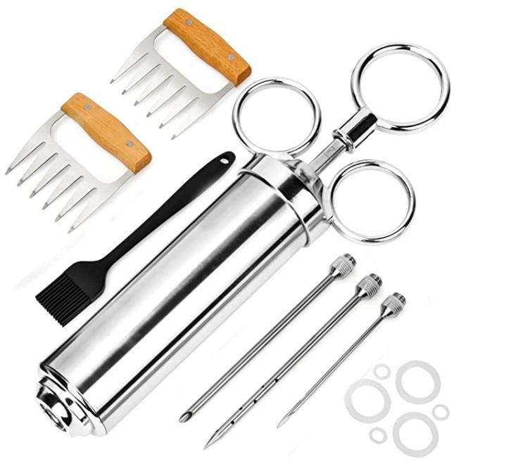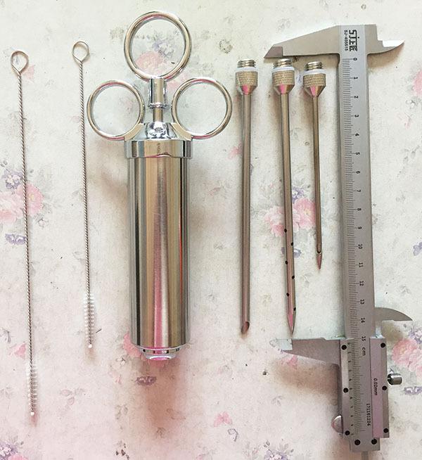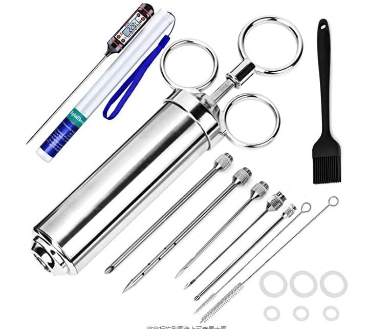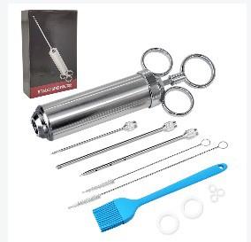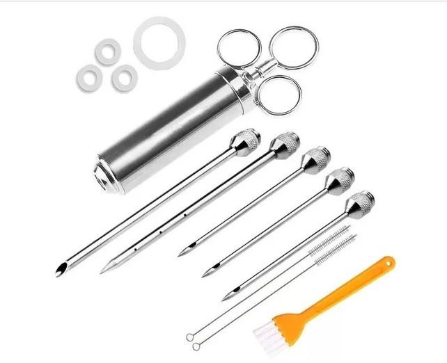 Cepillo de silicona con cepillo de limpieza. Jeringa de acero inoxidable de tres agujas para condimentos de filete de pavo. Aguja de pavo de 2 oz. Herramientas de cocina. Venta directa de fábrica. Taobao. Comercio exterior. Exportación. Amazon. Alibaba. AliExpress. Suministro.