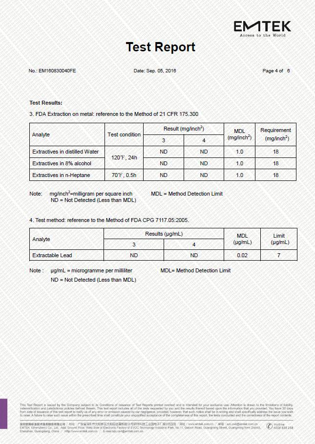 Material del producto: Cuerpo principal de acero inoxidable 304, consulte el informe de inspección de calidad de la FDA para conocer los accesorios.
