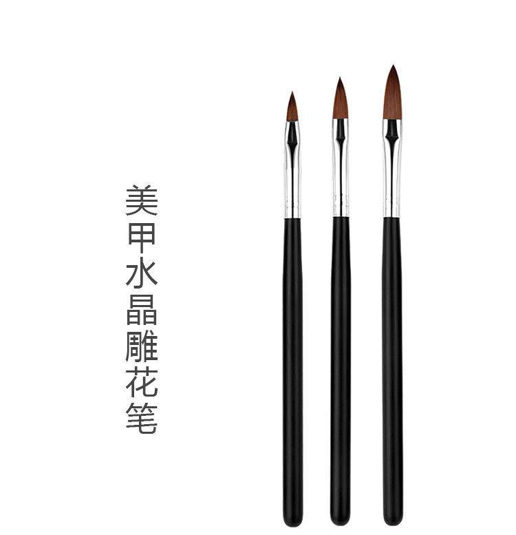 Herramientas para uñas, tres varillas de madera negras, cepillo para uñas, juego de bolígrafos para tallar cristales, extensión de pintura de uñas, bolígrafo de cristal