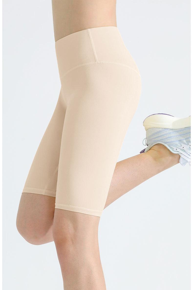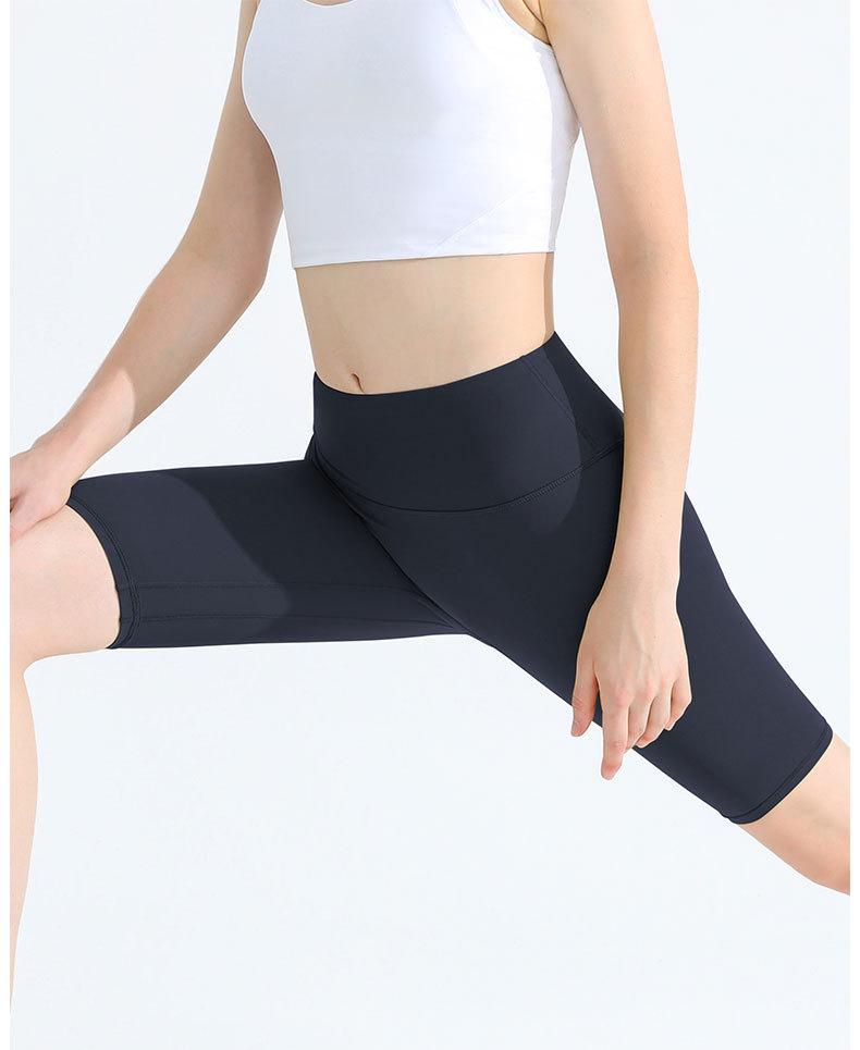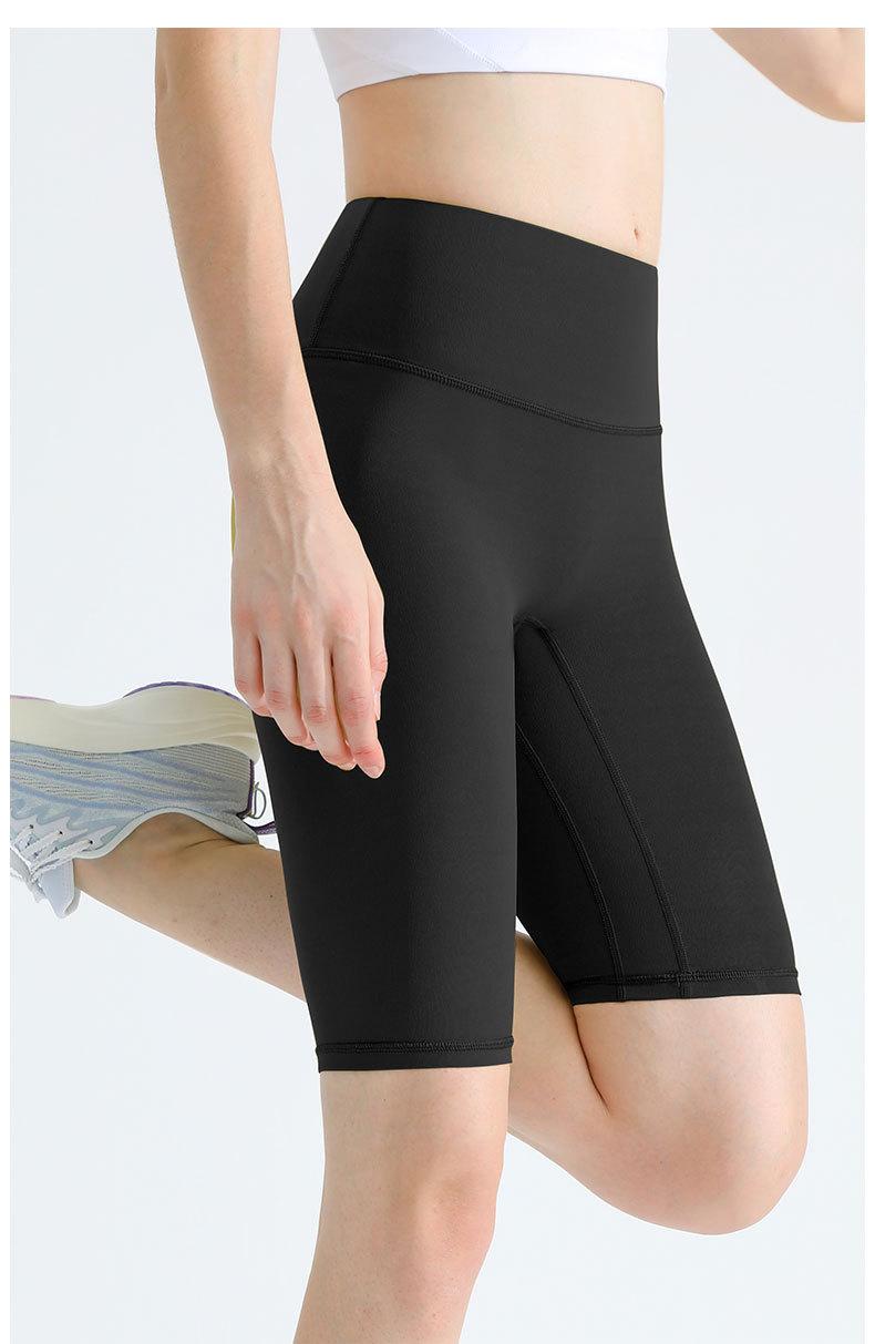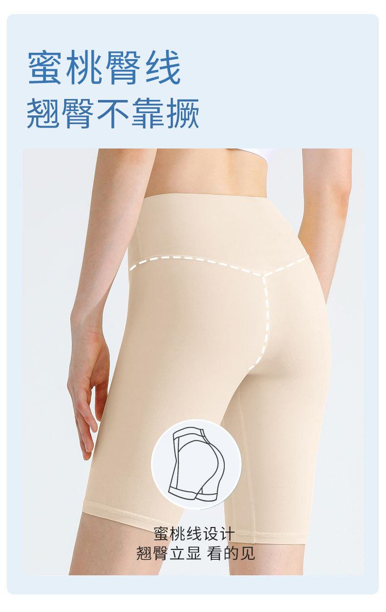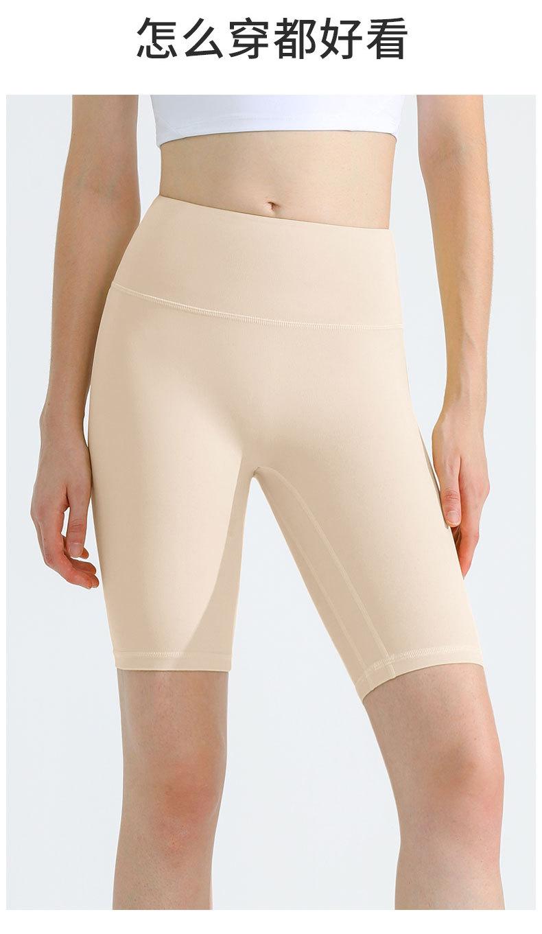Pantalones de yoga de cinco puntos para mujer, ropa deportiva color piel, pantalones cortos de montar, cintura alta, mallas deportivas de secado rápido para levantar la cadera en color melocotón