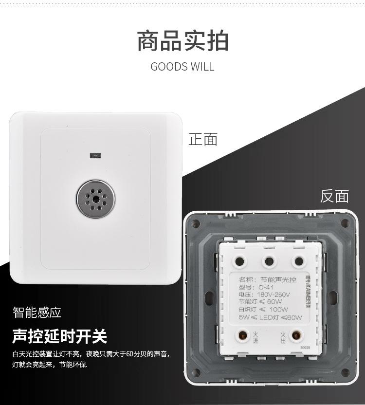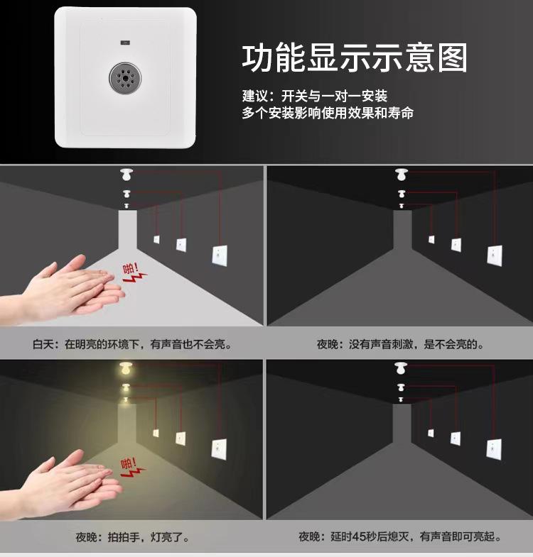 Interruptor de Control de Sonido y Luz Dos Hilos Retardo Pasillo Interruptor Sensor Inteligente Luz LED Doméstica Interruptor de Control por Voz de Alta Potencia