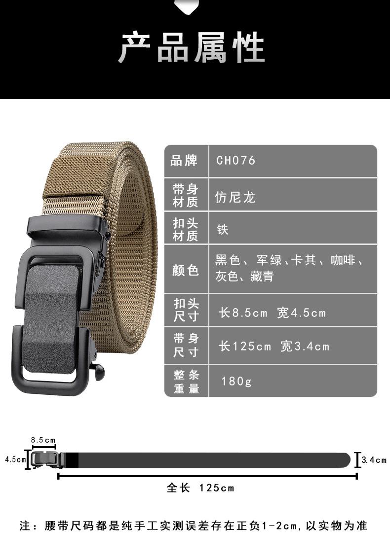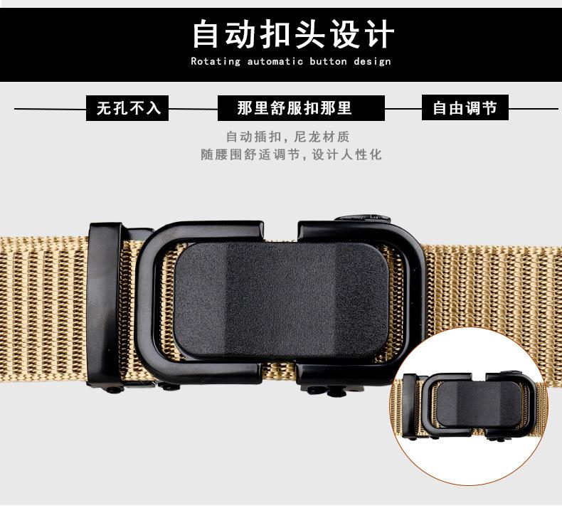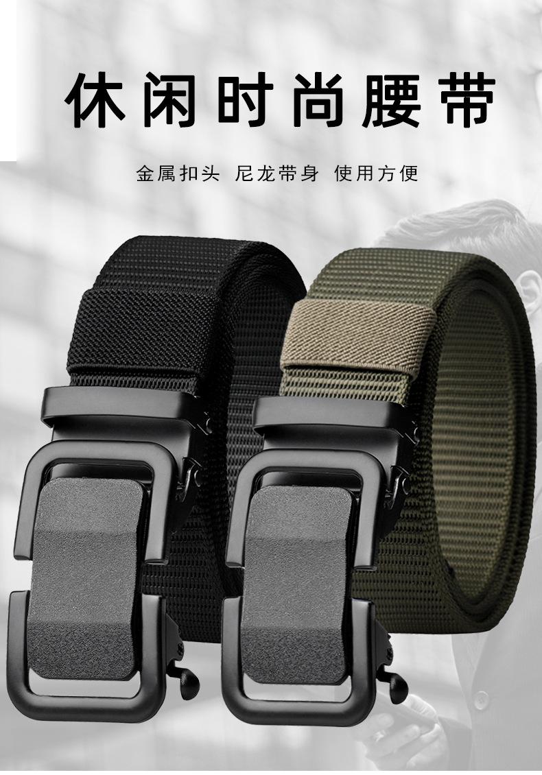 Cinturón de lona de nailon de imitación para hombre, nuevo, con hebilla automática sin dientes, tejido de alta calidad, para exteriores