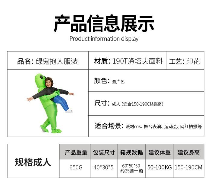 Halloween Alien ropa inflable festival disfraz parodia accesorios de terror Navidad cos ropa inflable transfronteriza