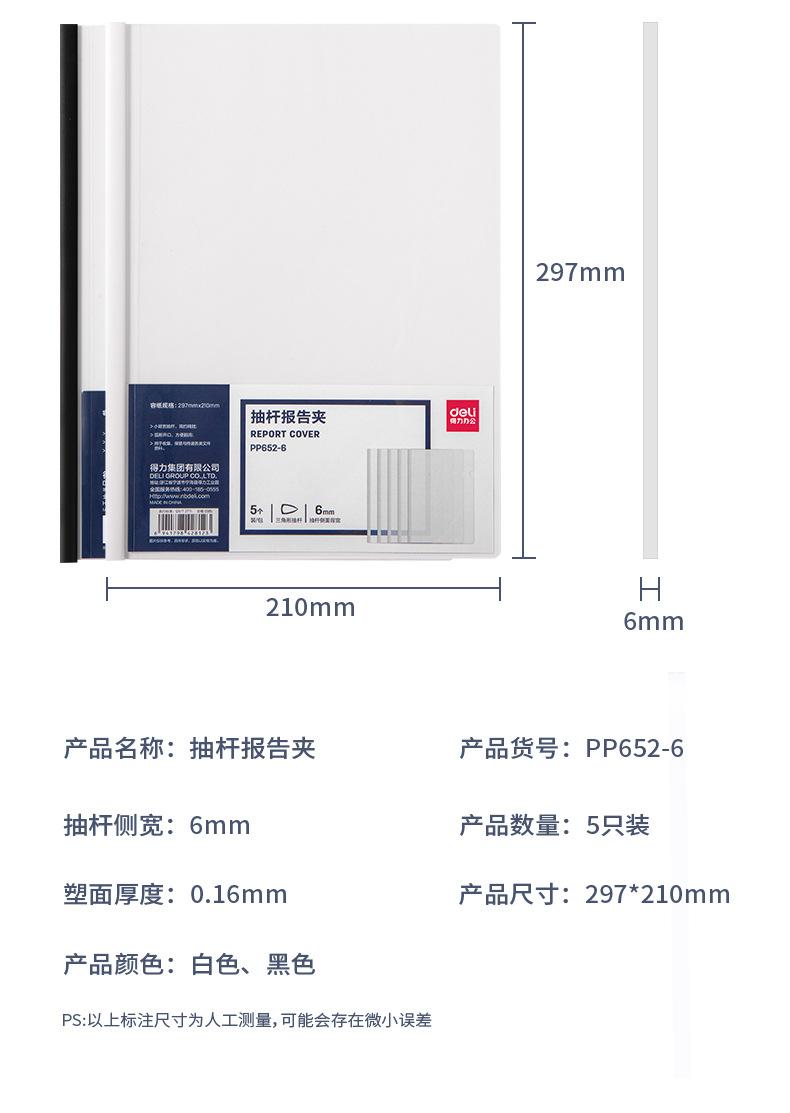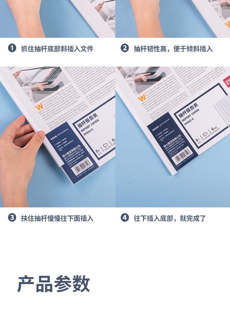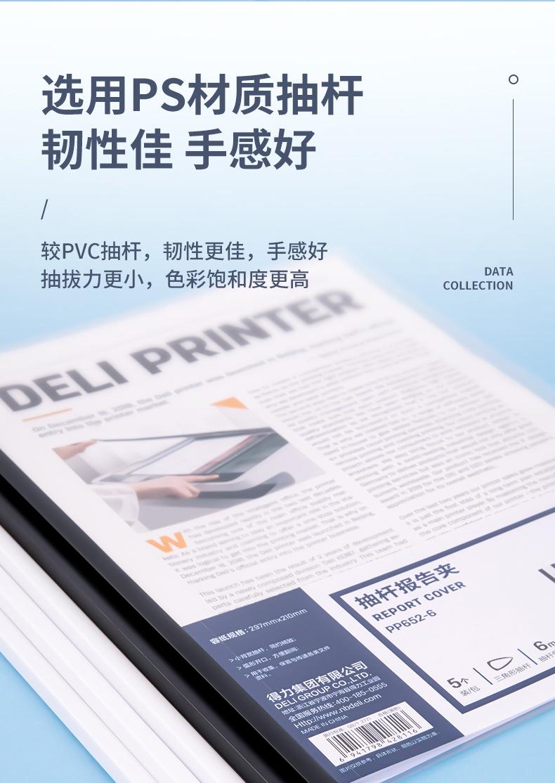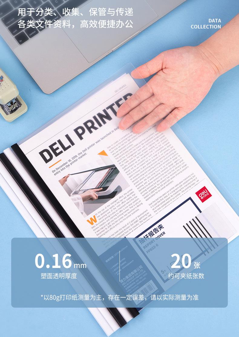 Carpeta transparente de gran capacidad A4 con clip de varilla blanca Deli, carpeta de plástico transparente con clip de varilla, venta al por mayor