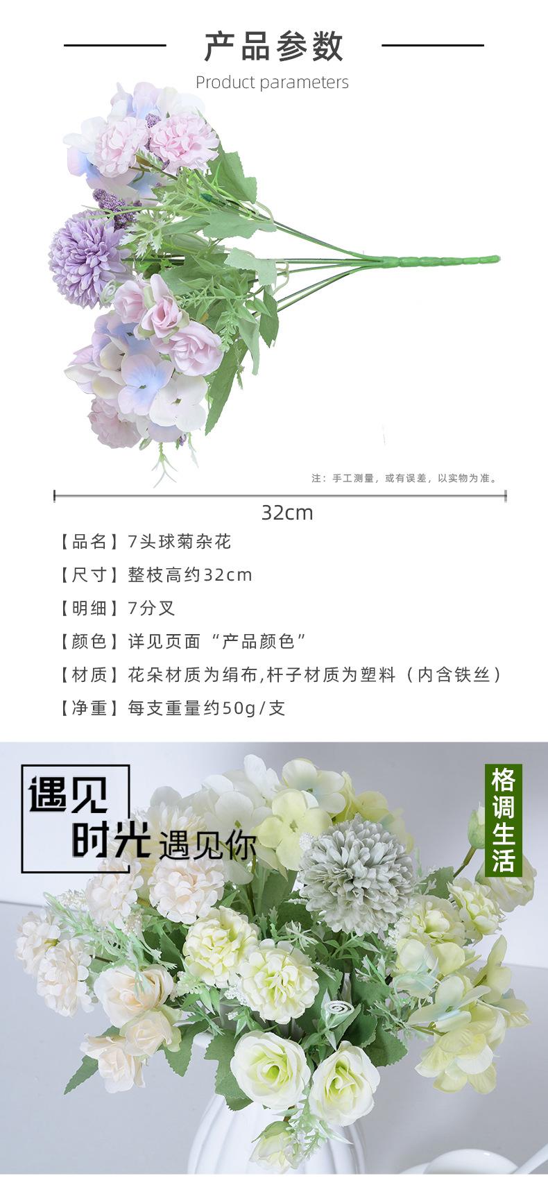 Boda en casa 7 rosas flor pequeña simulación ins accesorios de fotografía ramo de crisantemos bola flores decorativas al por mayor
