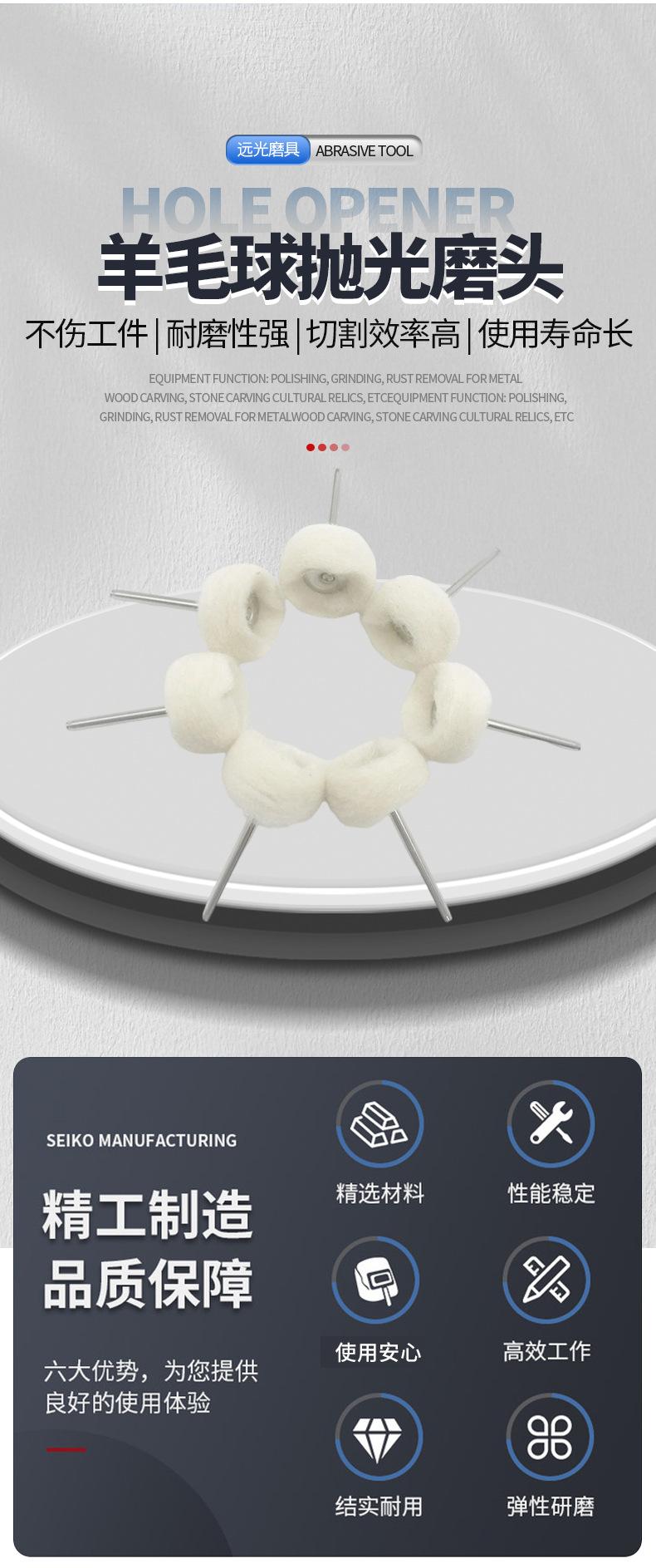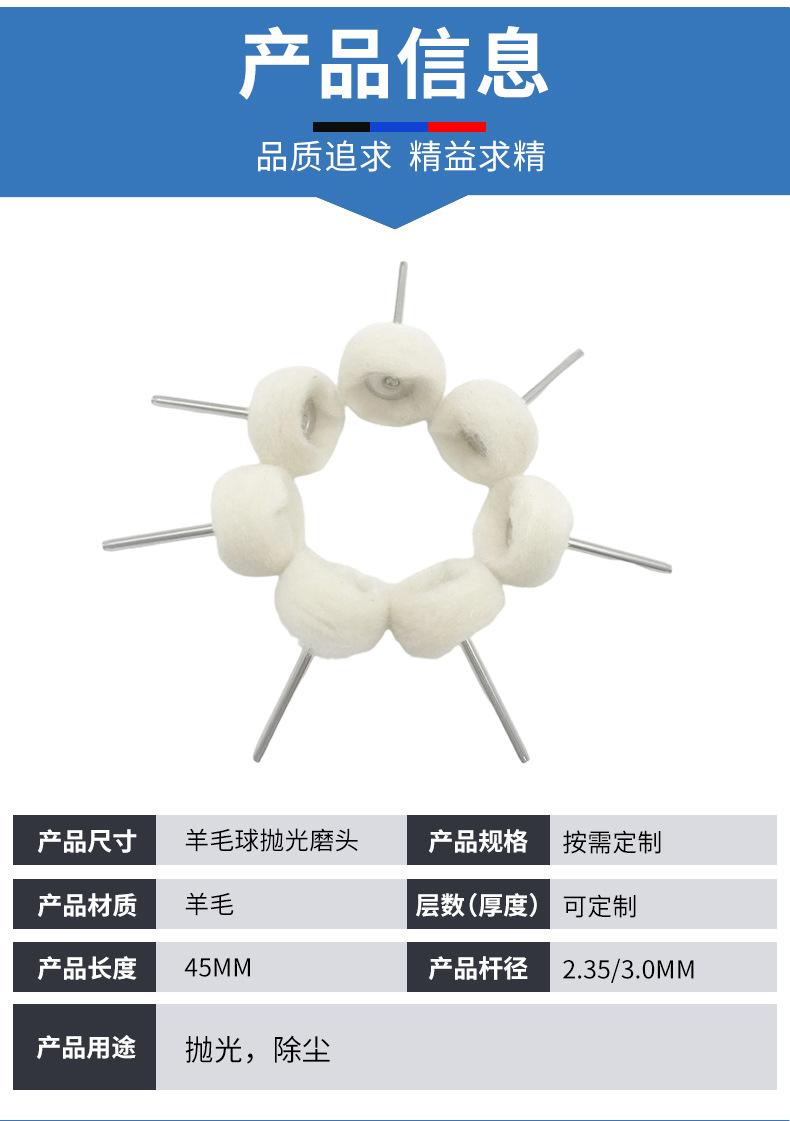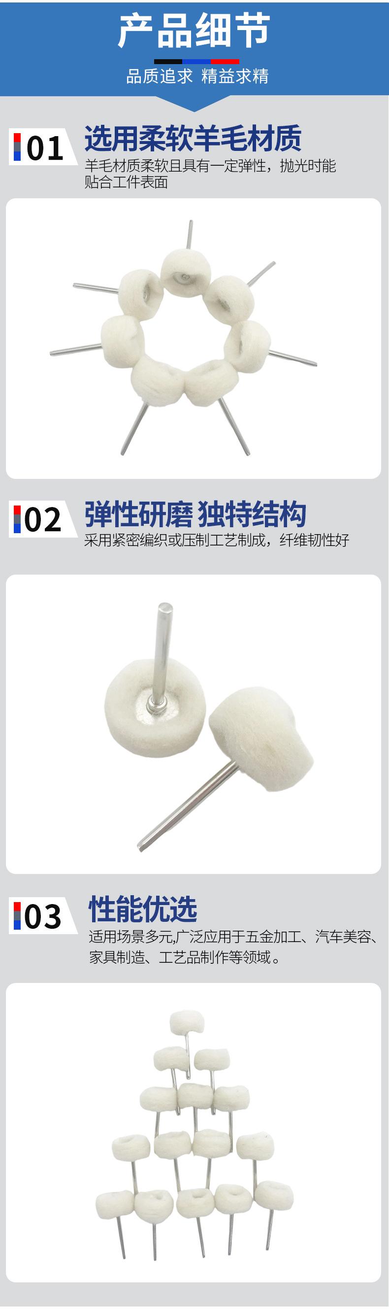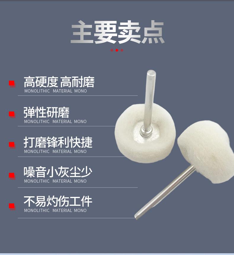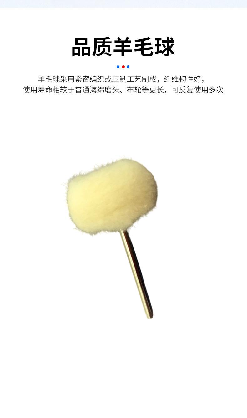 Rueda de pulido de lana pulida ámbar con mango, cabezal de pulido de cachemira de 3/2,35 mm, cabezal de pulido de bola de lana