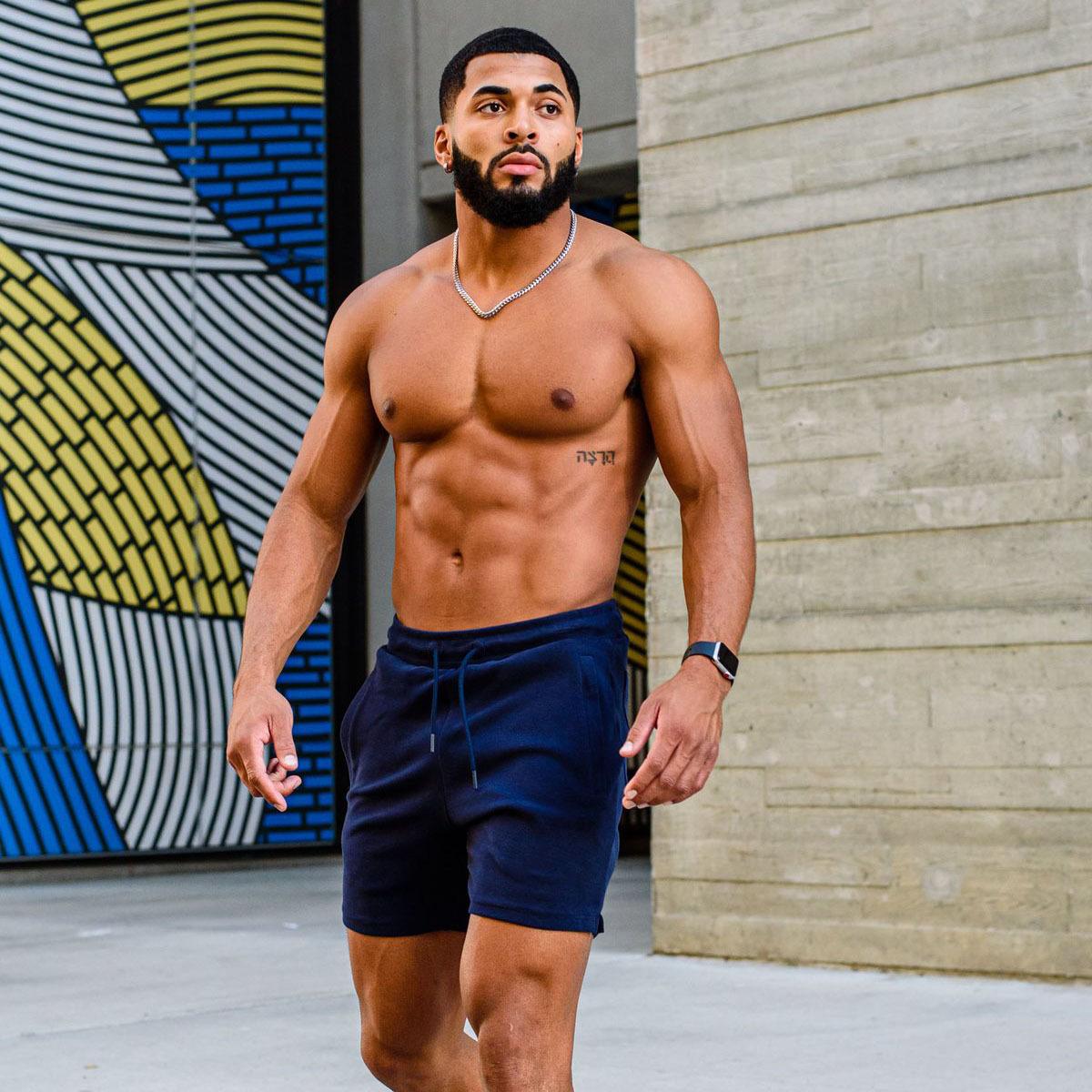 Pantalones cortos deportivos de fitness para hombre, de algodón, con aberturas laterales, para correr, de otoño y verano, sin logotipo