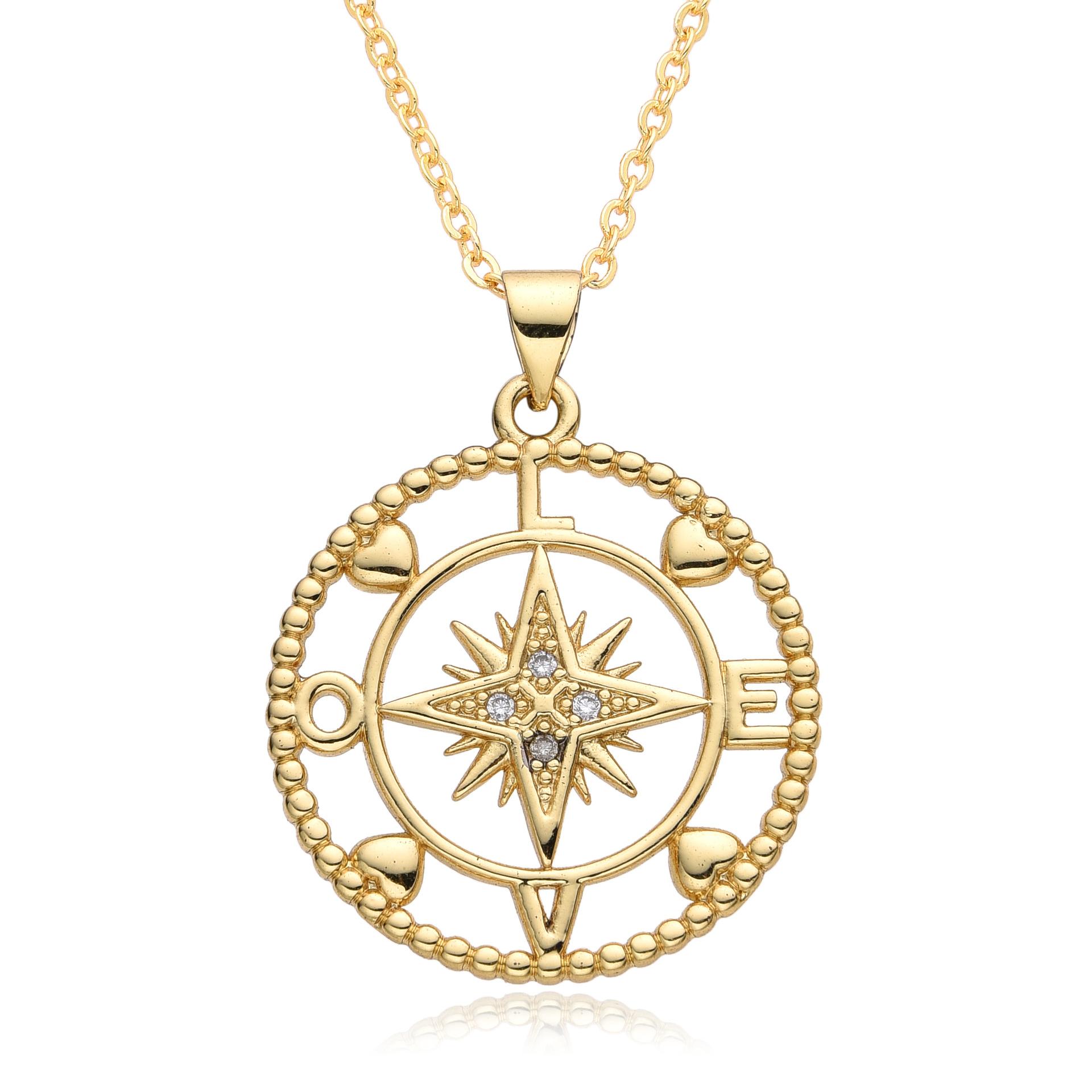 Collar redondo de brújula chapado en oro y cobre, estilo hip hop, brújula de moda, colgante de hip hop HIPHOP, cadena tipo o.