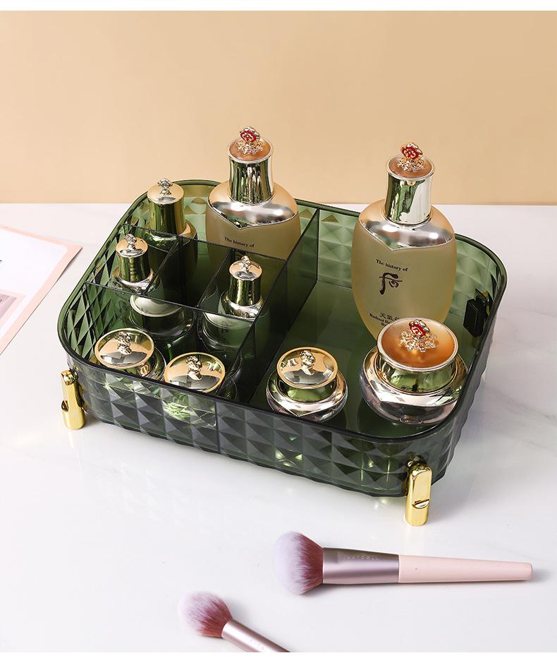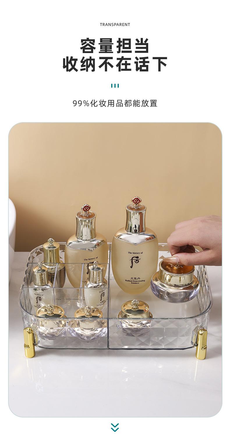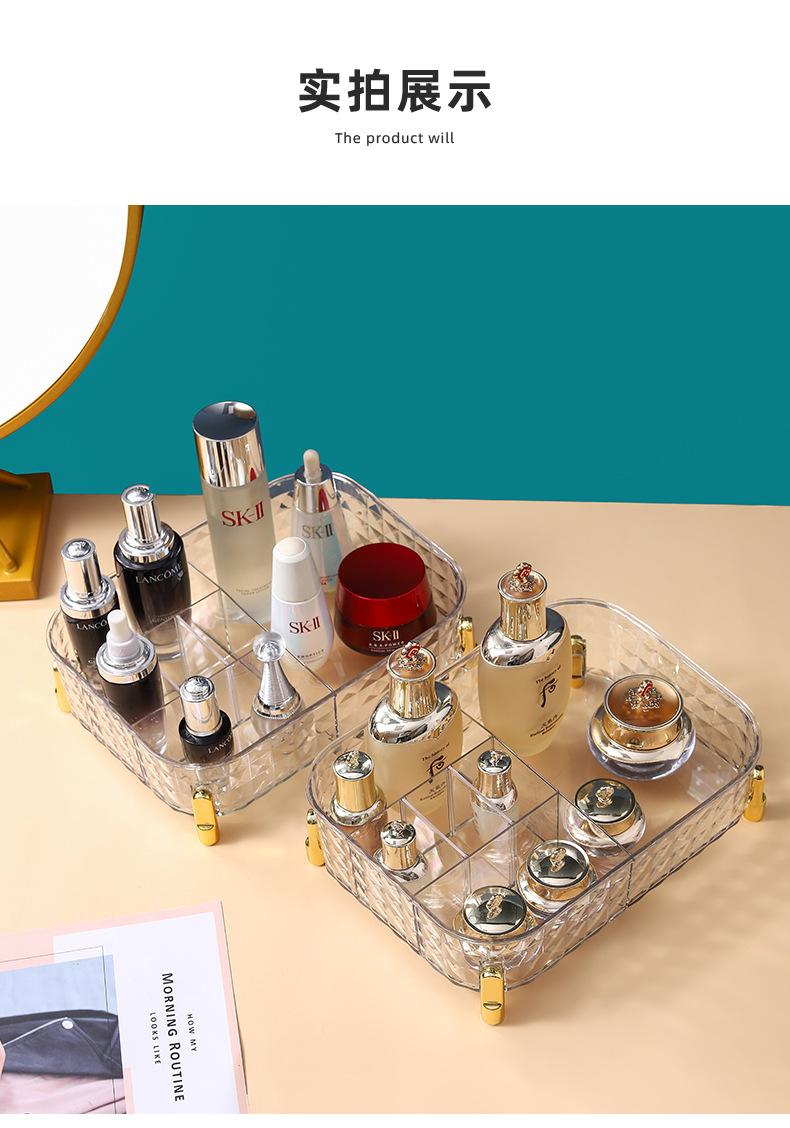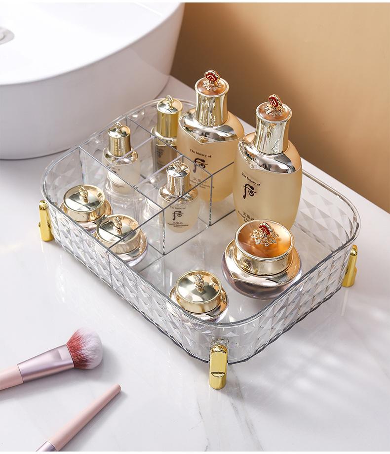 Caja de almacenamiento de cosméticos de lujo ligero, caja de almacenamiento de cosméticos transparente de escritorio, estante con compartimentos para lápices labiales para productos para el cuidado de la piel para el hogar