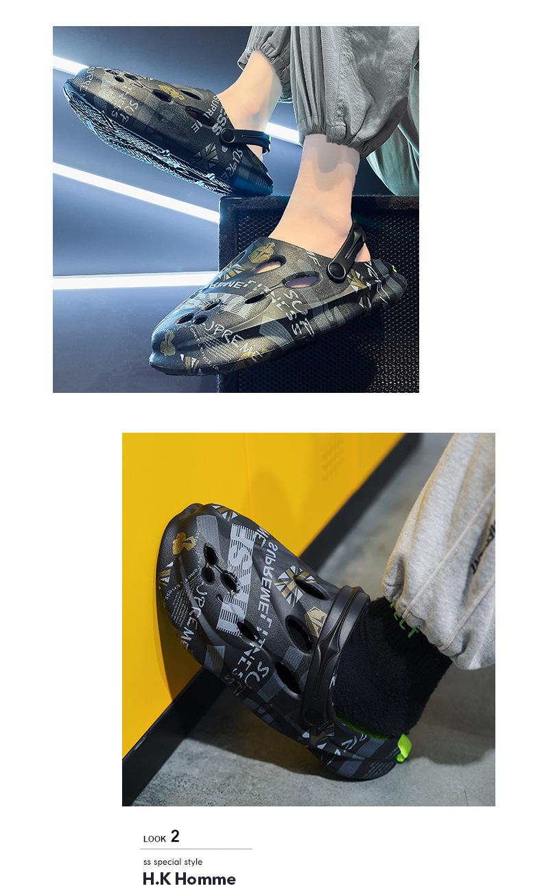 Zapatos informales transpirables de verano con agujeros de camuflaje para hombre, zapatillas de suela gruesa antideslizantes para exteriores de doble uso, sandalias de playa de moda para hombre