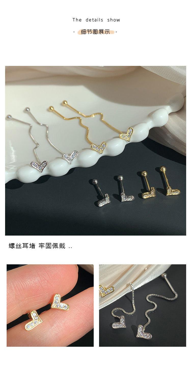 Pendientes de rosca de amor Pendientes de mujer de plata de ley con temperamento dulce Nicho Pendientes asimétricos de alta gama Moda Estudiante Tendencia