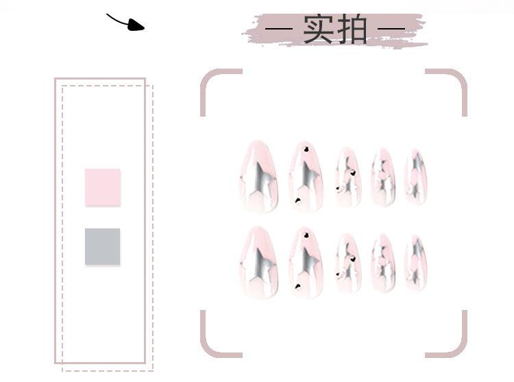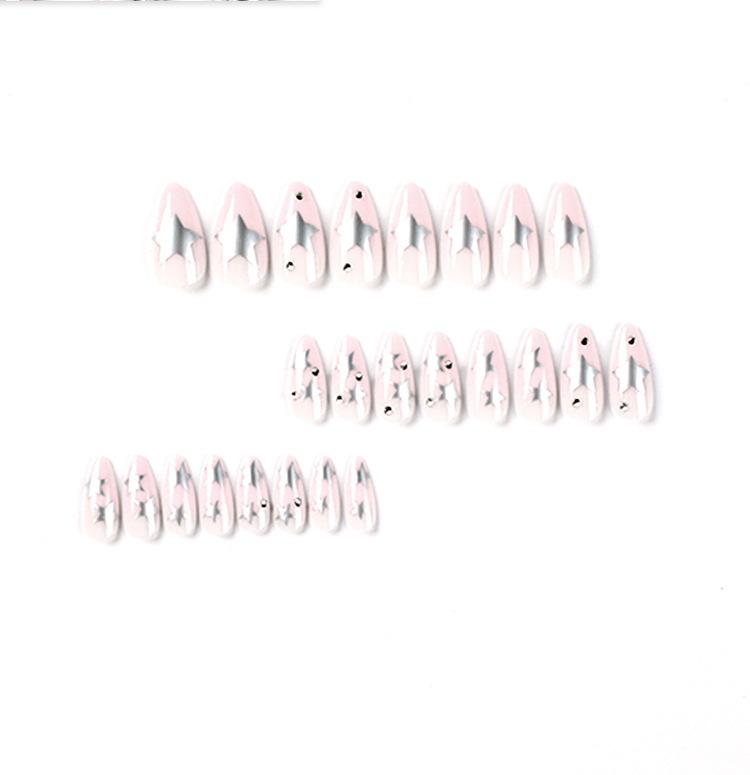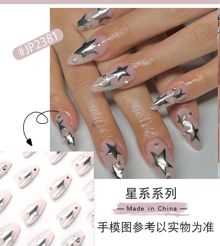 Use una pieza de uña postiza Sweet Cool Silver Star con diamantes de imitación para manicura, uña postiza terminada, manicura, manicura avanzada, producto terminado