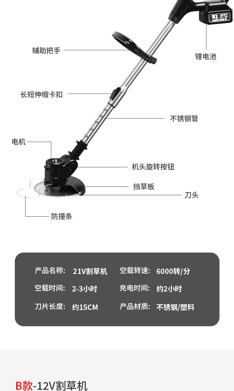 21v lithium battery mower (five sections) two electricity and one charge