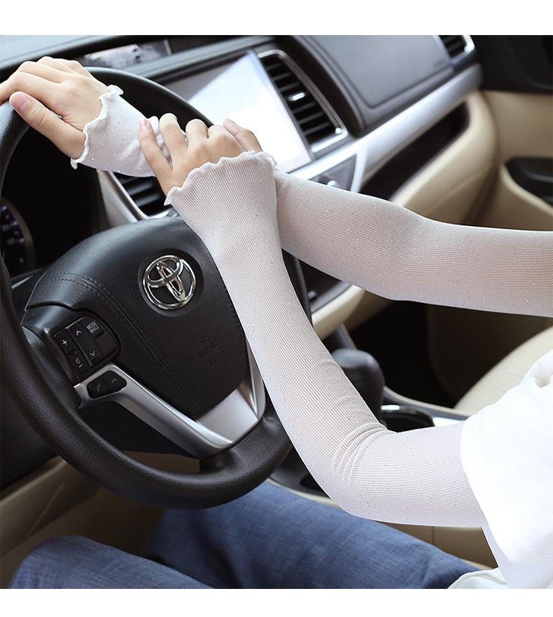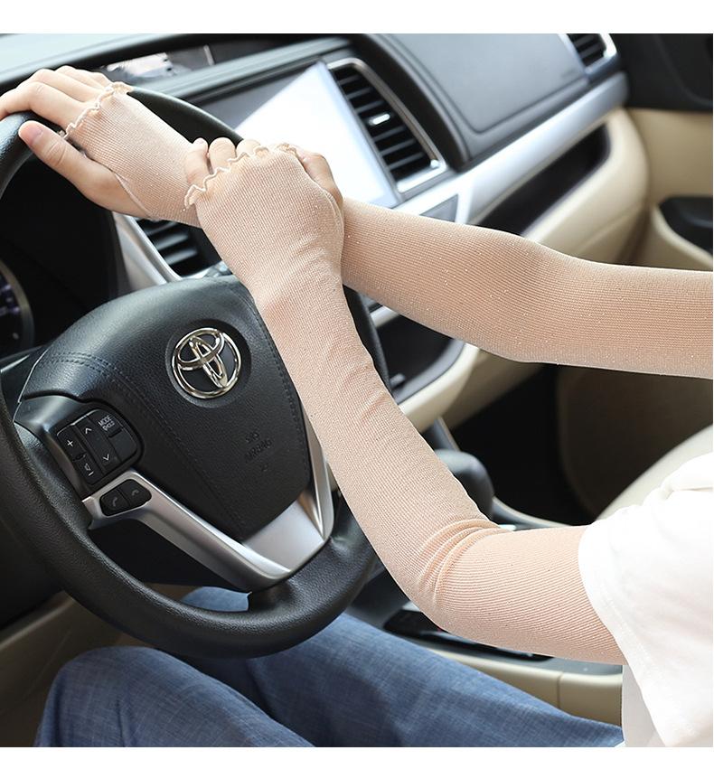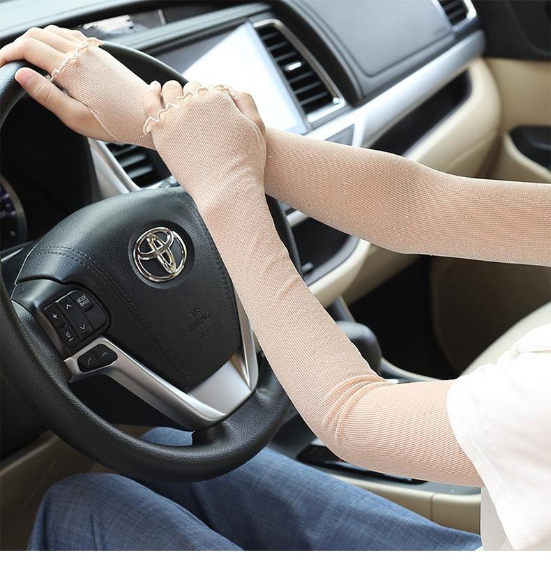 Manga de Protección Solar de Verano para Mujer Malla Fina Transpirable Fresca Guantes Largos Sueltos de Alta Elasticidad para Conducir y Montar Manga para Brazo