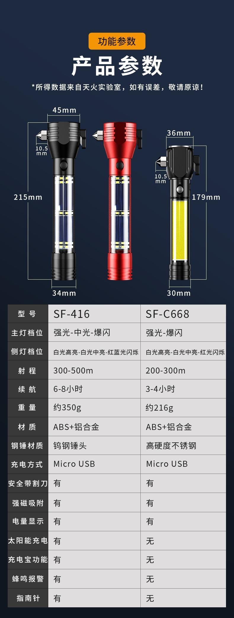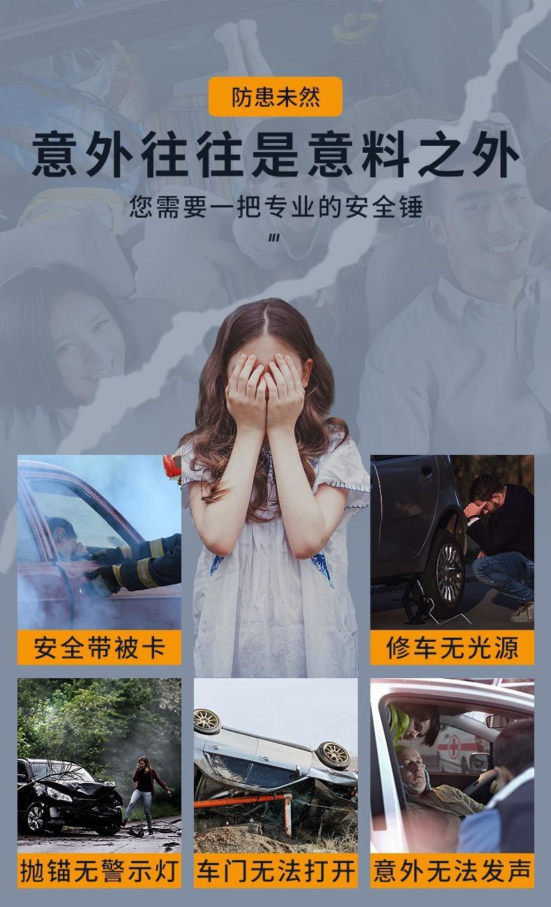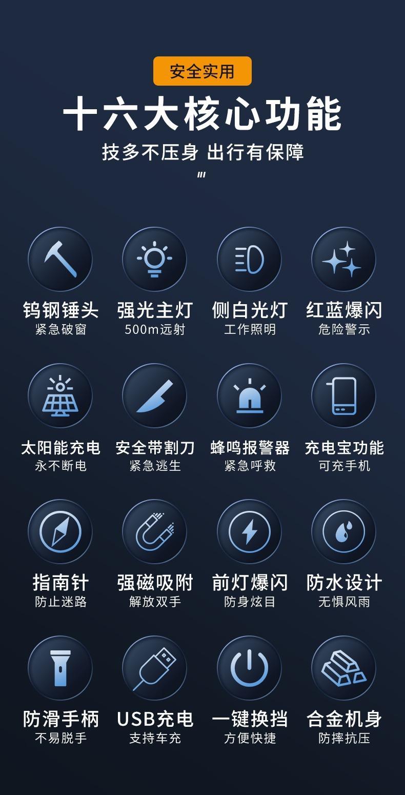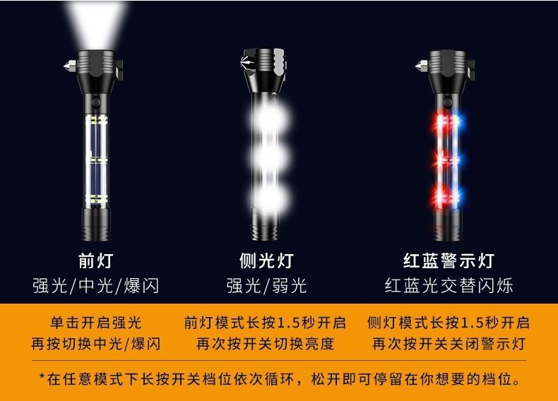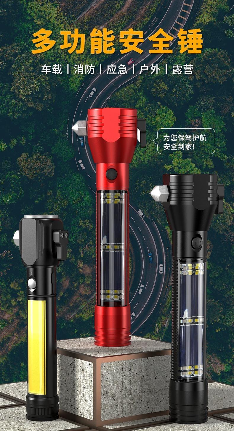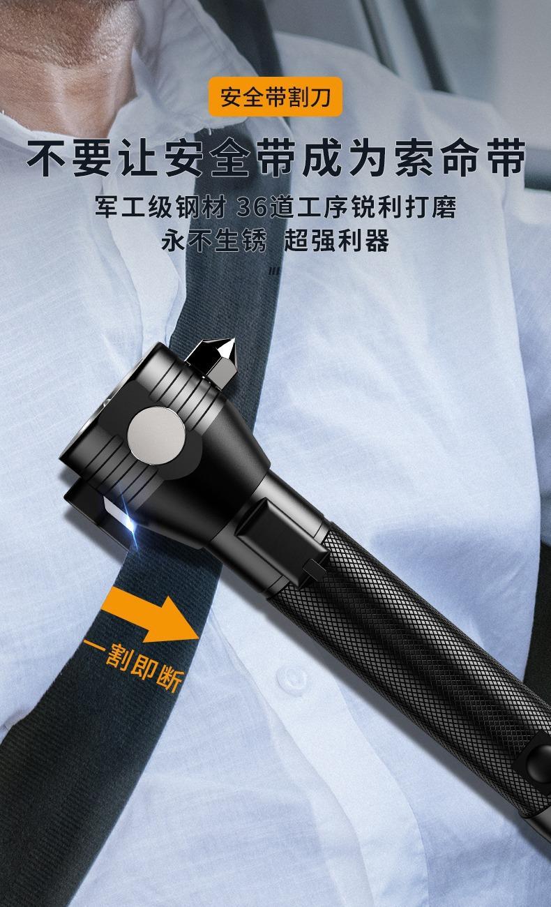 Martillo de Seguridad para Incendios de Mano para Coche Diez en Uno Linterna de Emergencia Multifunción Rompeventanas de Coche Luz de Advertencia