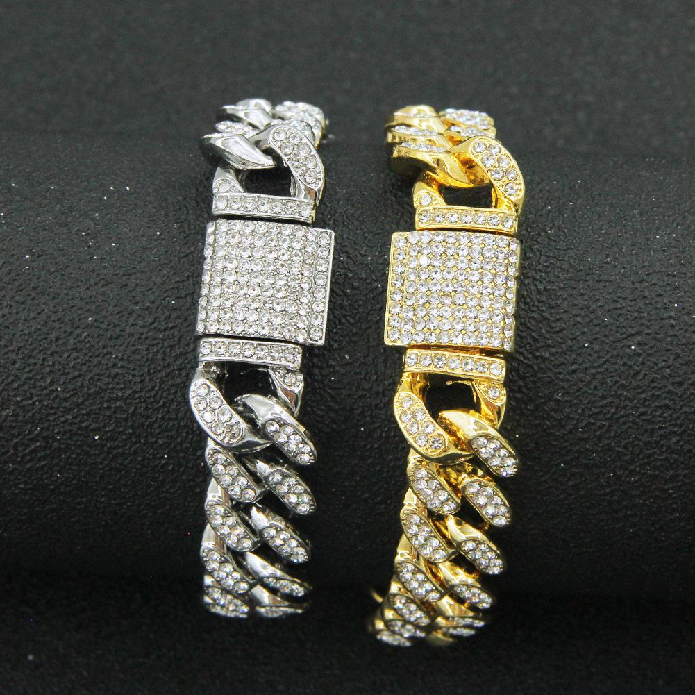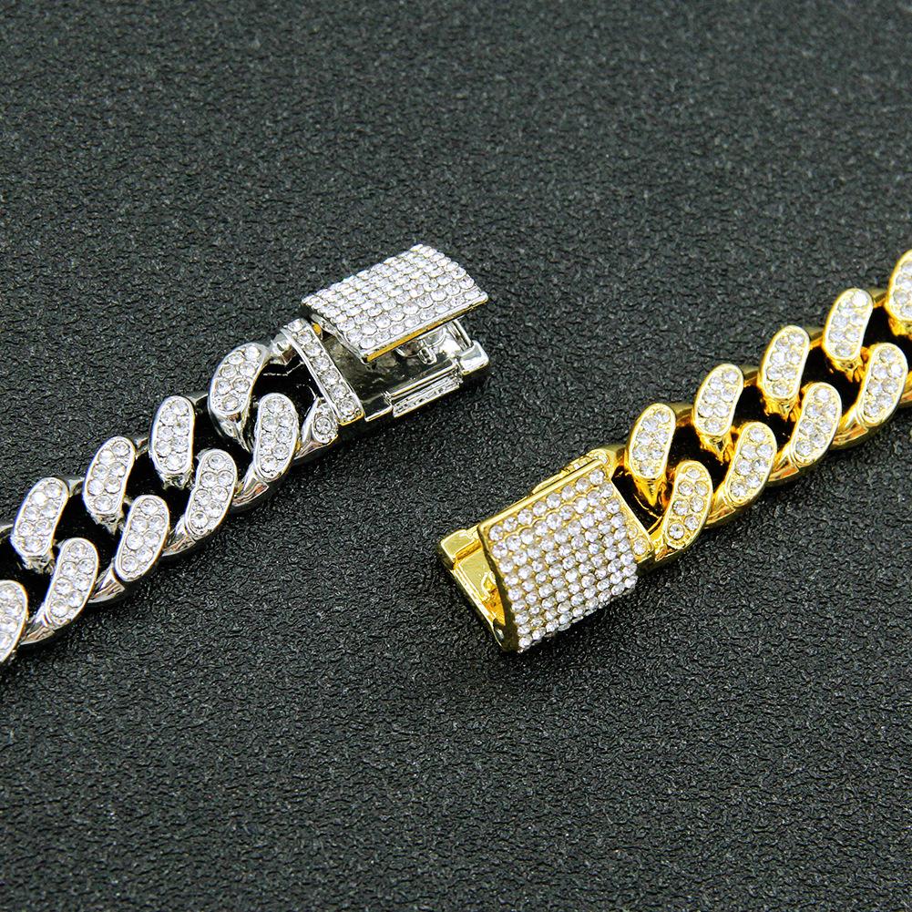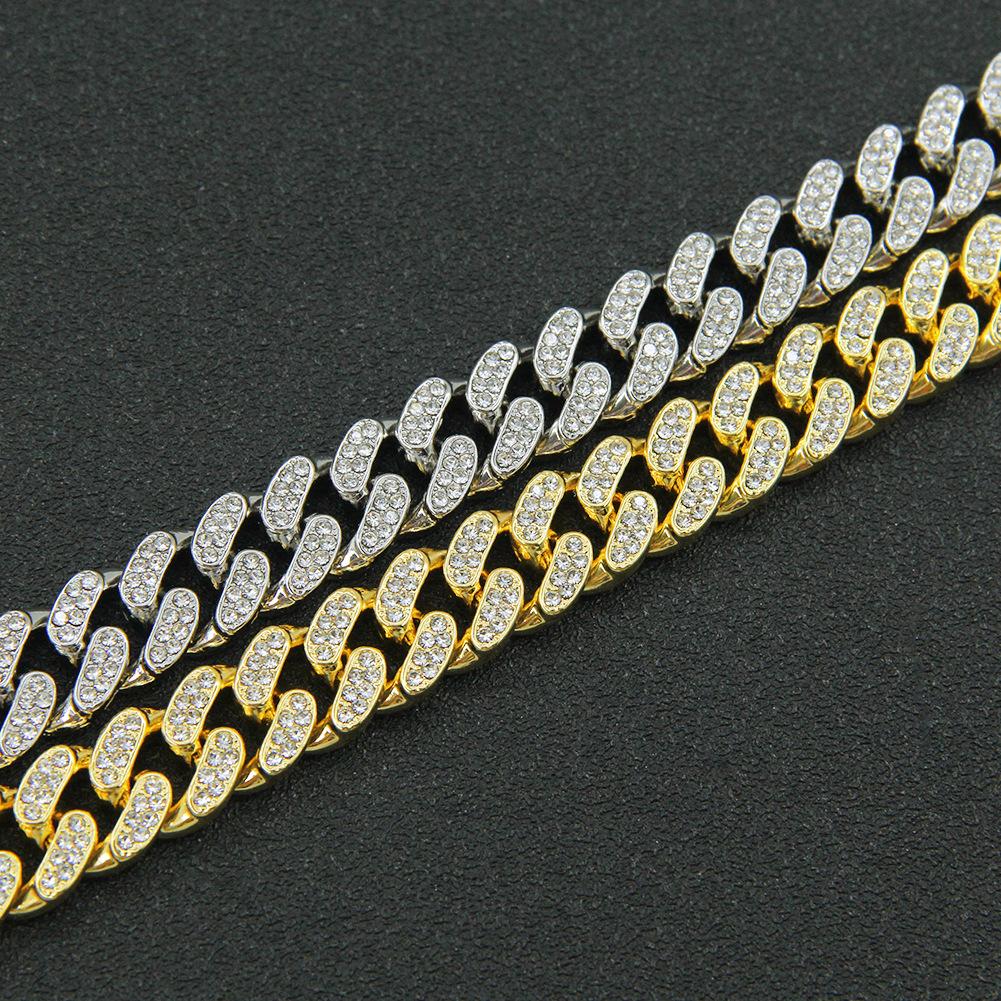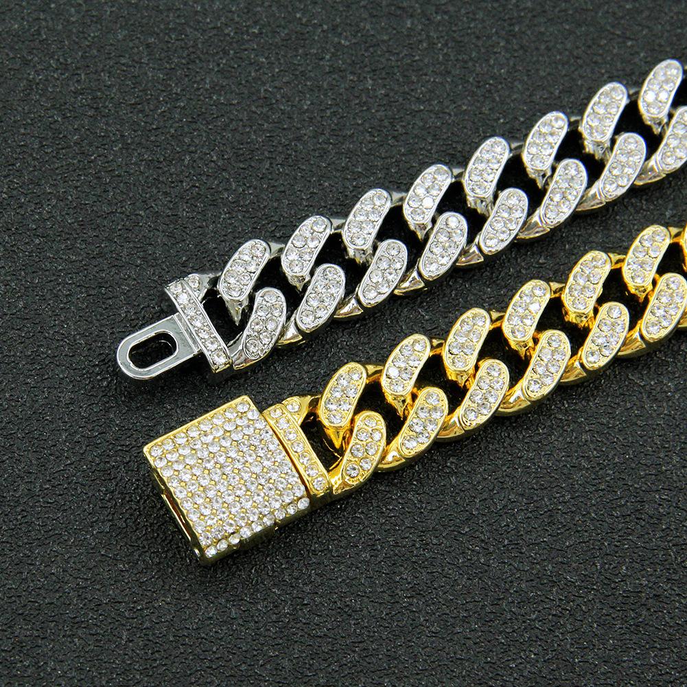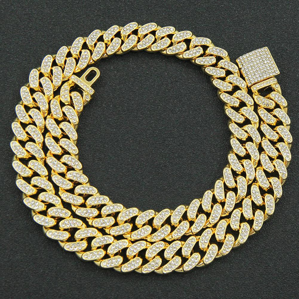 | Collar de cadena cubana de oro grande con diamantes de hip hop para hombre, estilo europeo y americano, de Miami, muy vendido, al por mayor. |