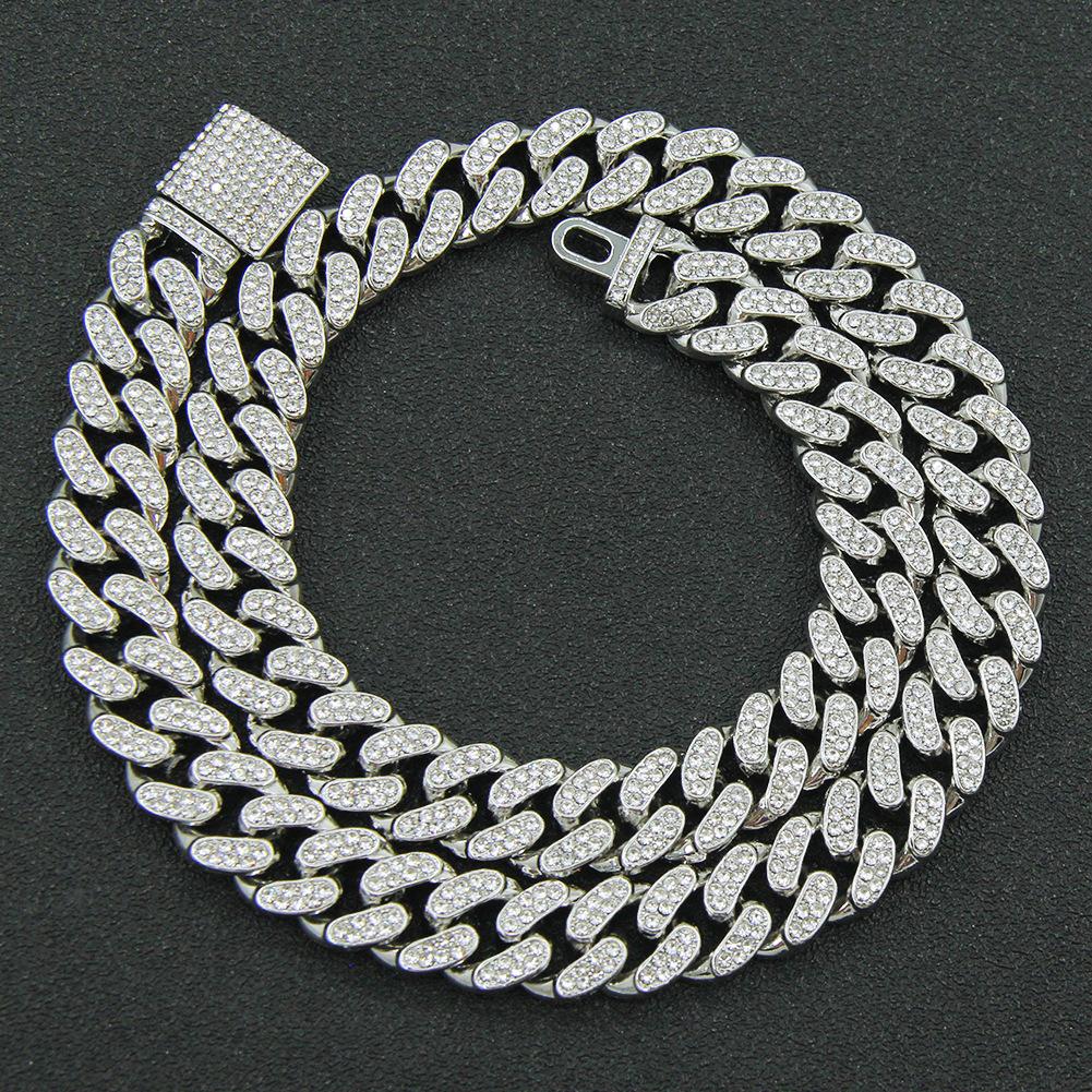 | Collar de cadena cubana con hojas de diamante estilo hip-hop europeo y americano para hombres y mujeres, accesorios de motocicleta punk a la moda |