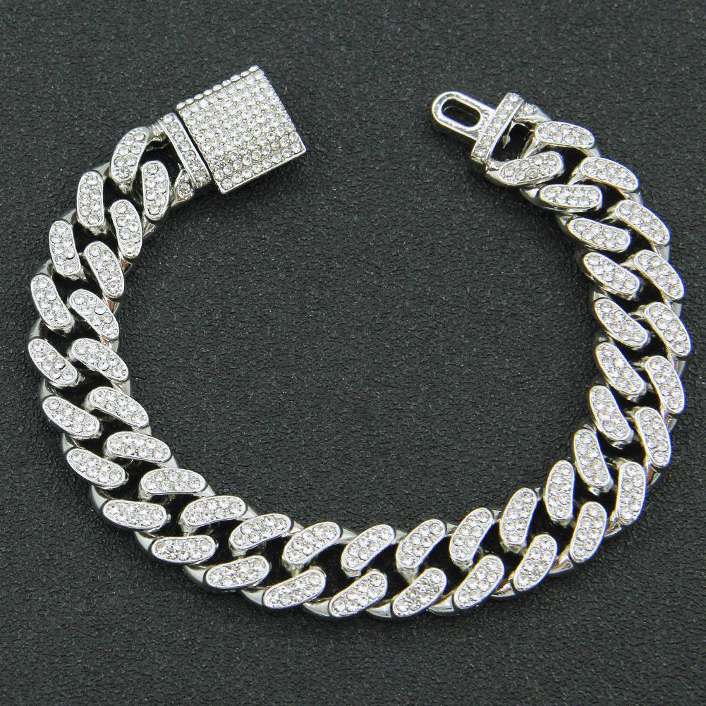 | Collar de cadena cubana con diamantes cuadrados cortos y llenos de diamantes para hombre, estilo hip-hop europeo y americano, accesorios para discoteca, discoteca, baile callejero, joyería colgante |