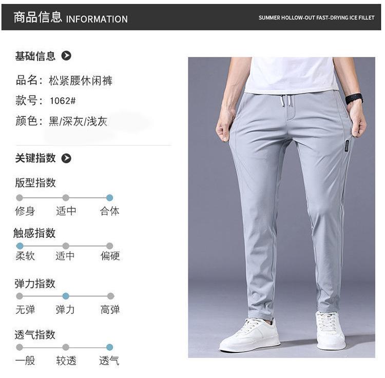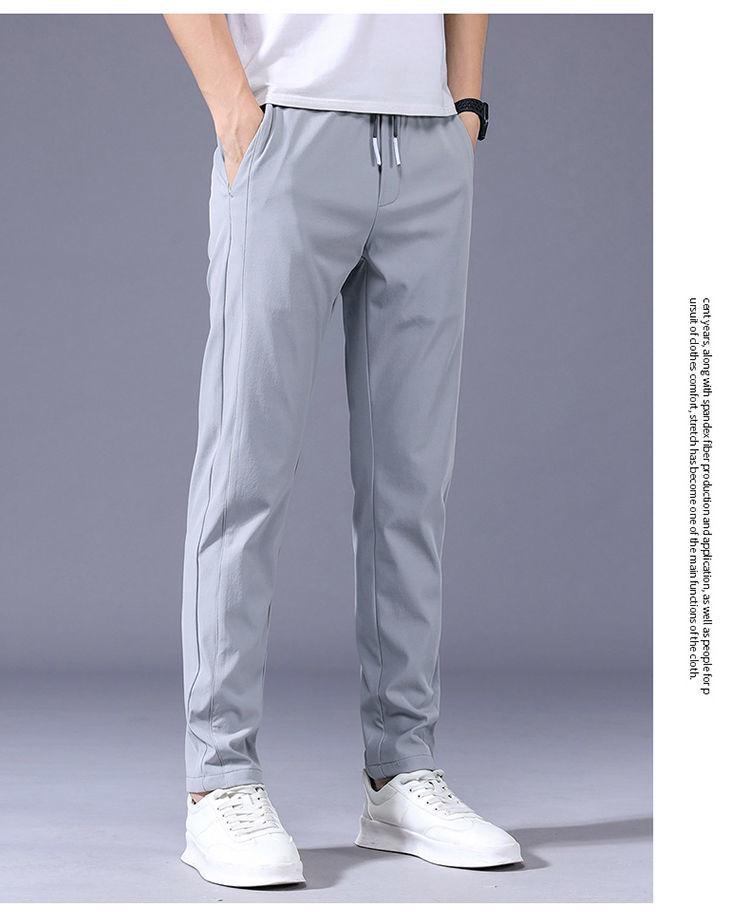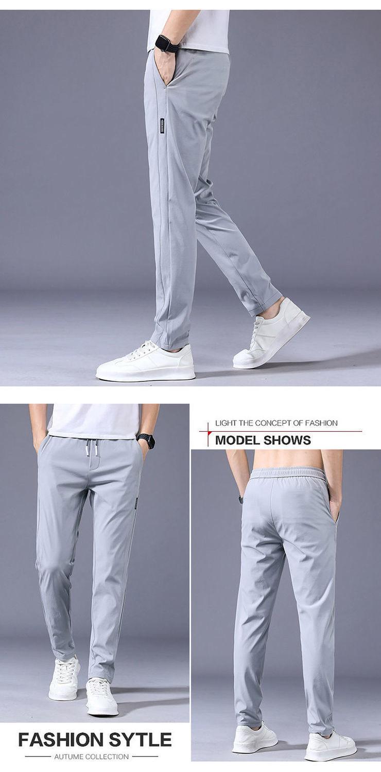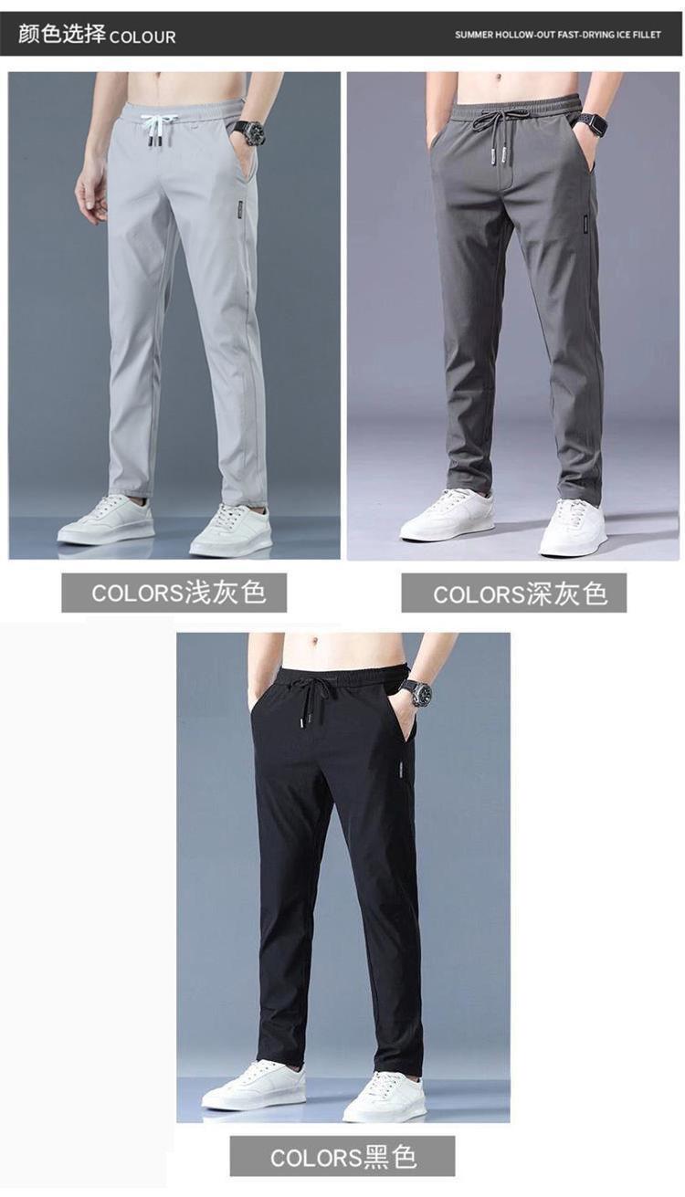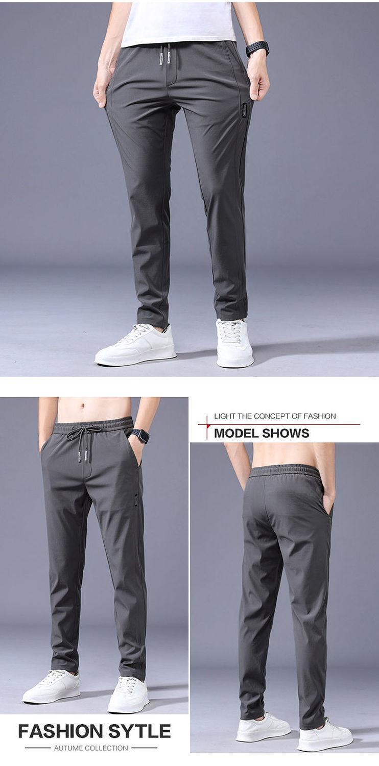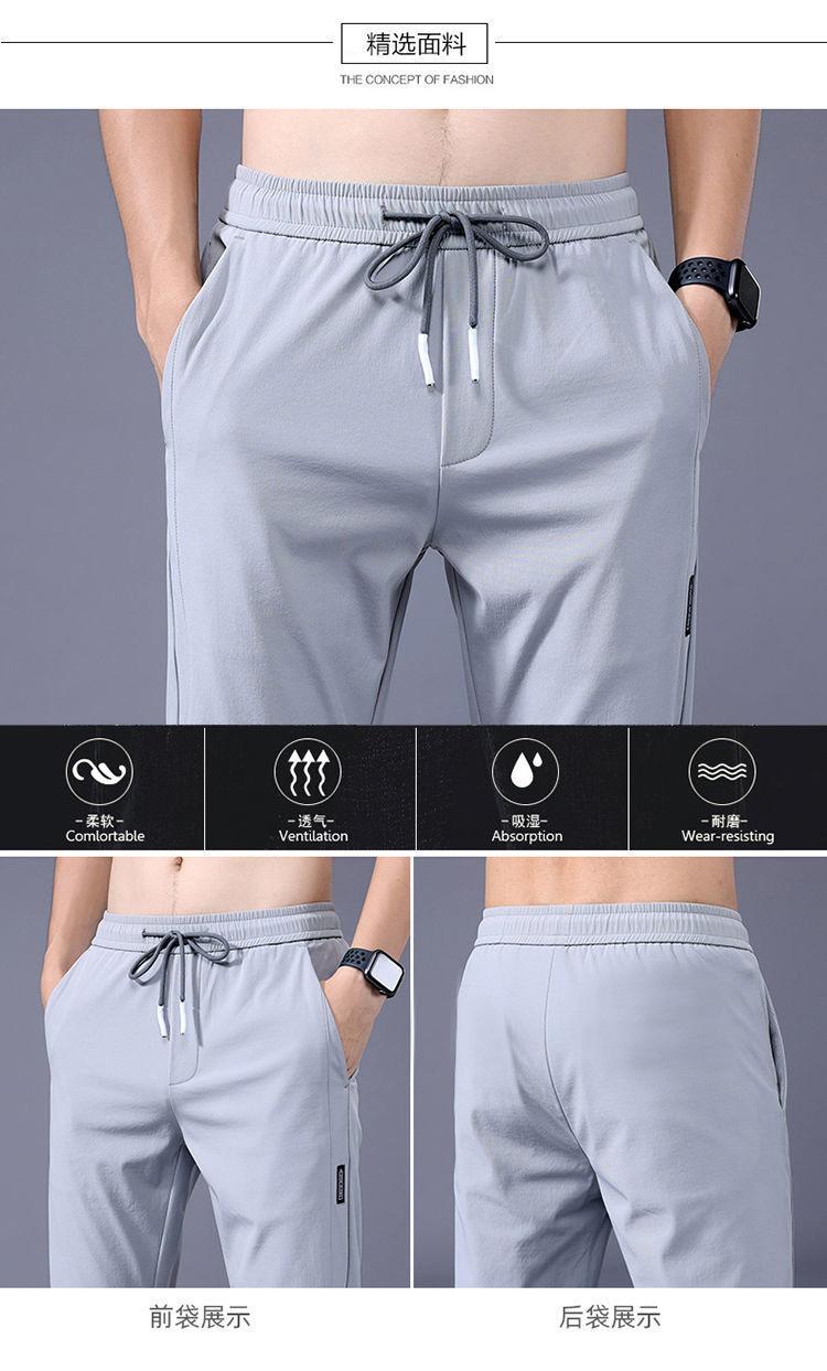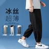 Pantalones de seda de hielo para hombre, nuevos pantalones deportivos holgados de talla grande, elásticos, transpirables, para jóvenes, delgados, casuales, de verano