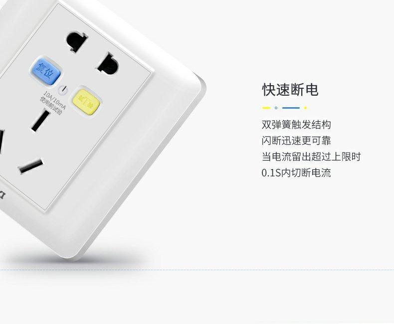 4. El enchufe de fuga 10A se usa generalmente en enchufes convencionales de cinco orificios, y 16A se usa en enchufes especiales de 16A (como aires acondicionados, calentadores de agua, cocinas integrales, etc.)