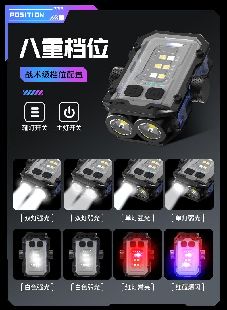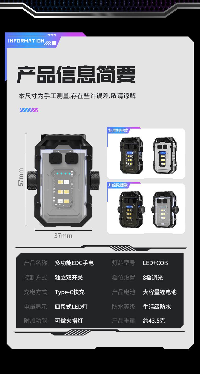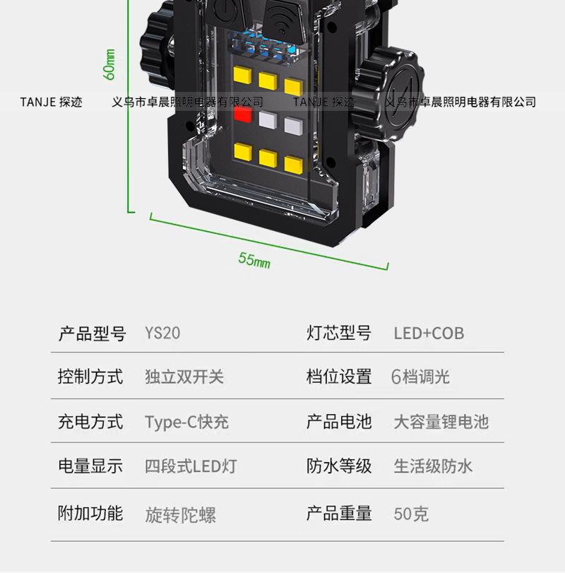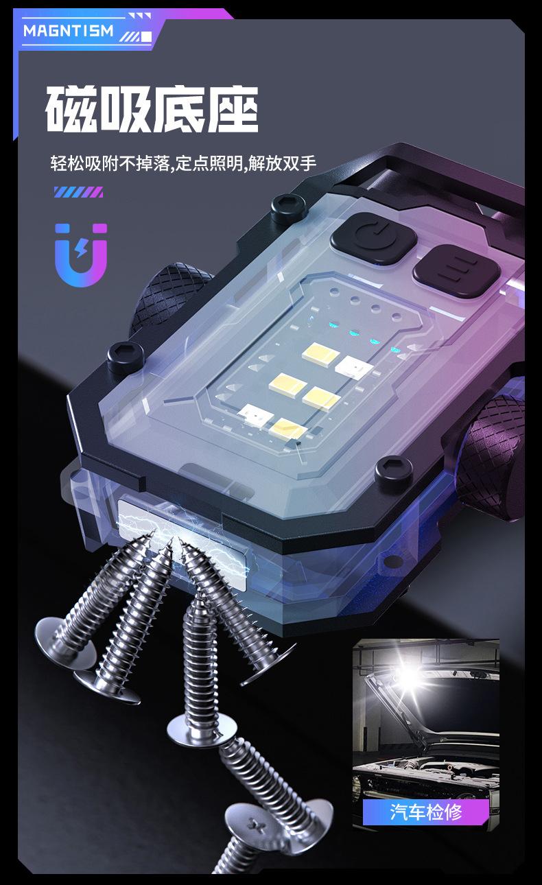 Características: múltiples fuentes de luz, pantalla de potencia, resistente al agua de por vida, resistente al desgaste y a las caídas, fuerte magnetismo, giroscopio giratorio