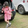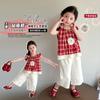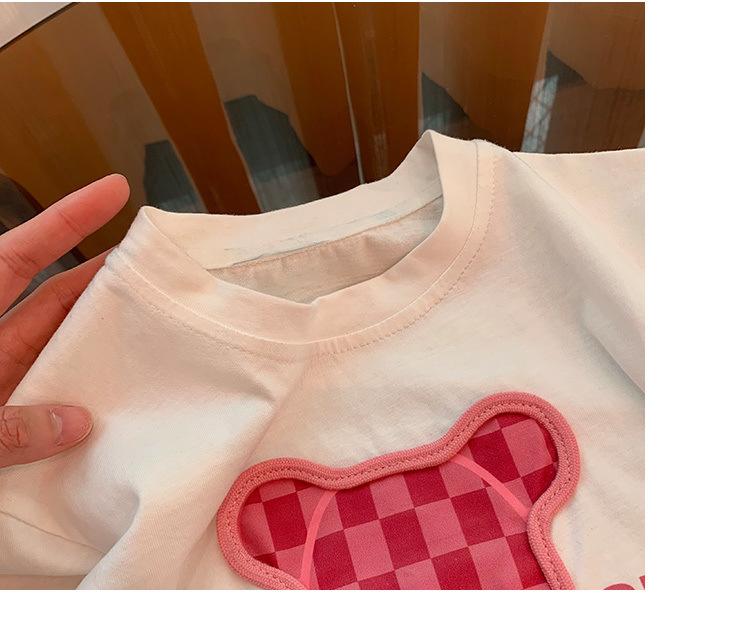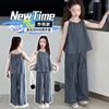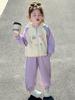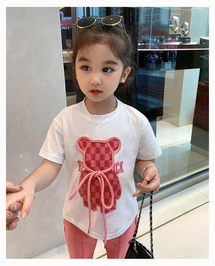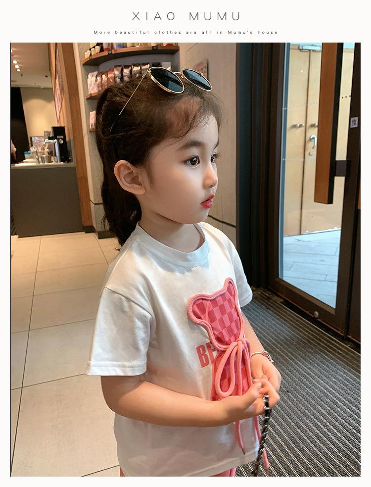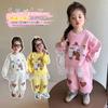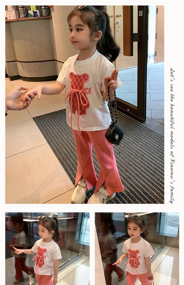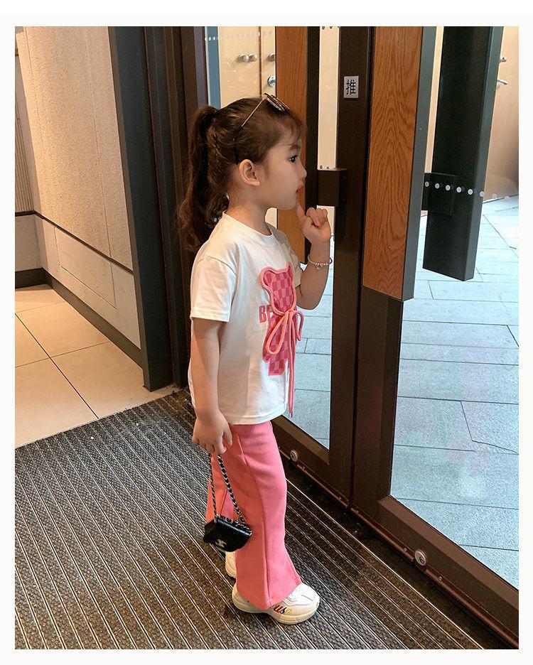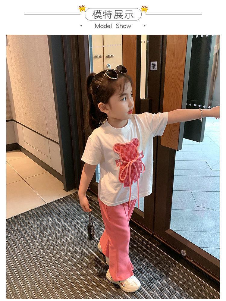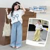 Traje de niña, verano 2025, estilo coreano, camiseta con estampado de dibujos animados, pantalones de trompeta, conjunto de dos piezas moderno para bebé