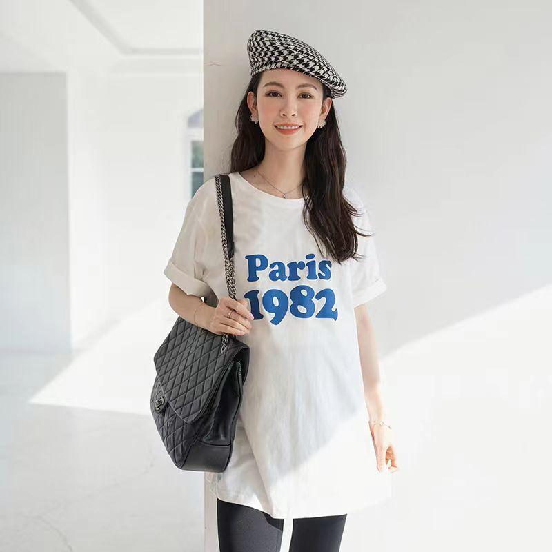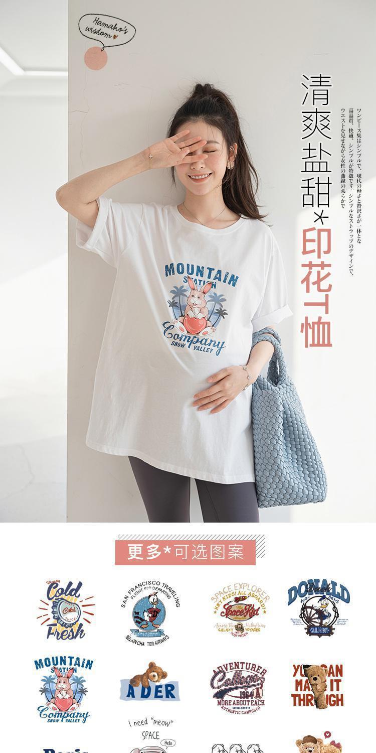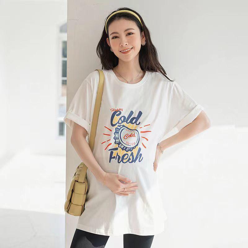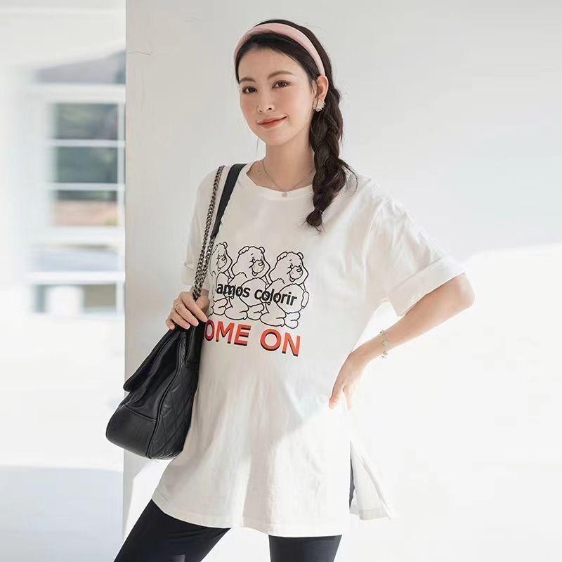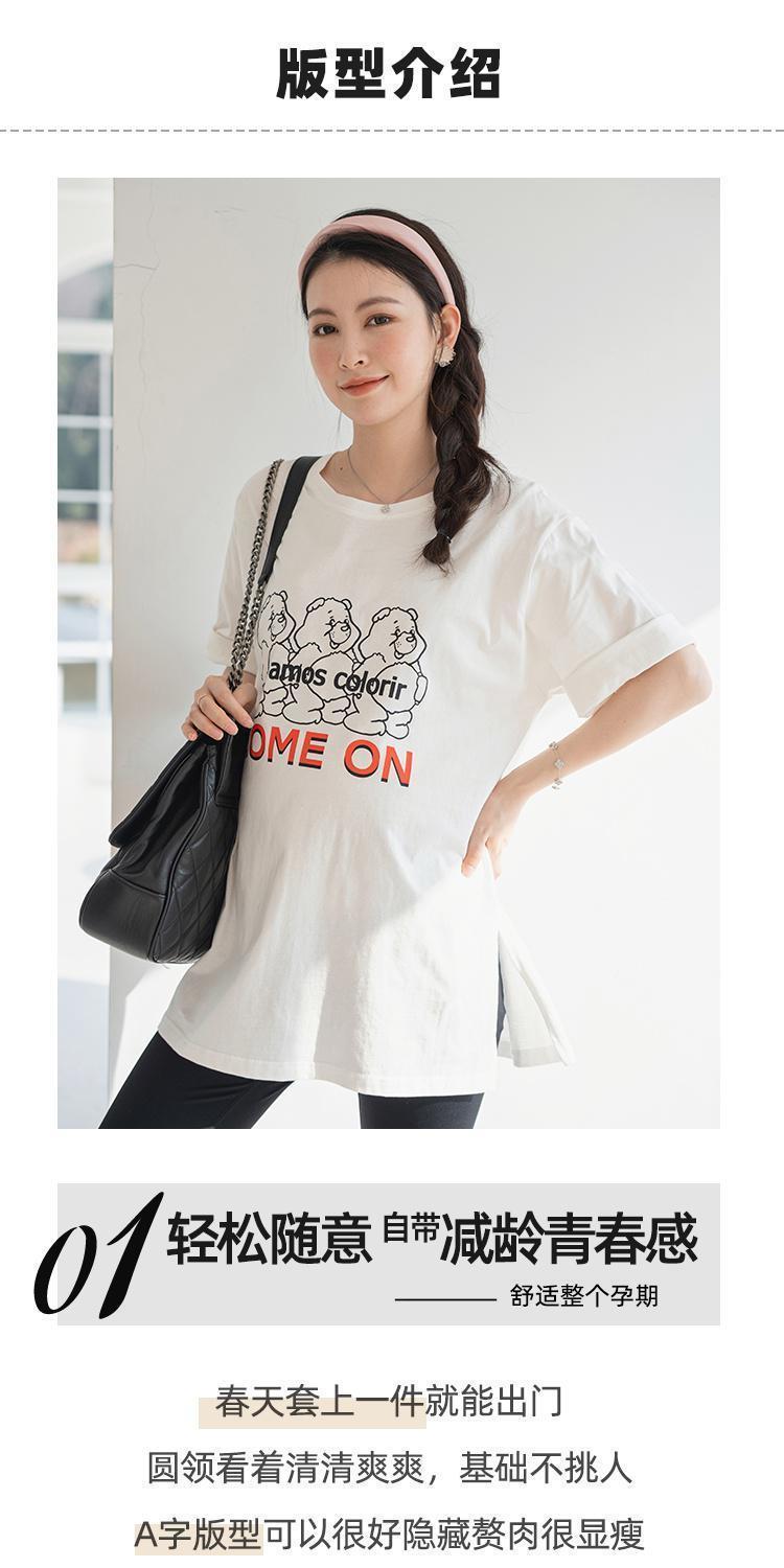 Camiseta de manga corta de algodón de verano para embarazadas, top holgado de longitud media de talla grande, transpirable y absorbente de sudor, top informal por encima de la cadera.